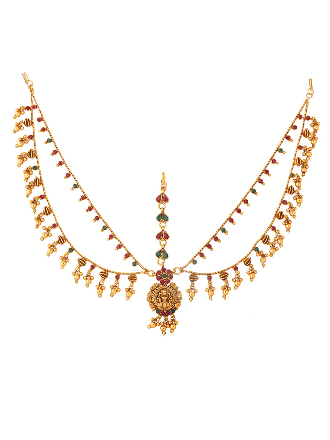Head Chain For Women Gold Toned Bridal layered Beaded Traditional Mathapatti For Women and Girls (Gold 4)