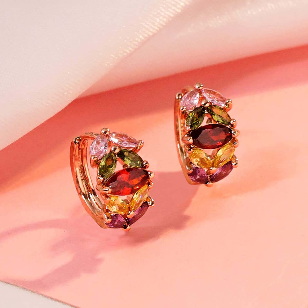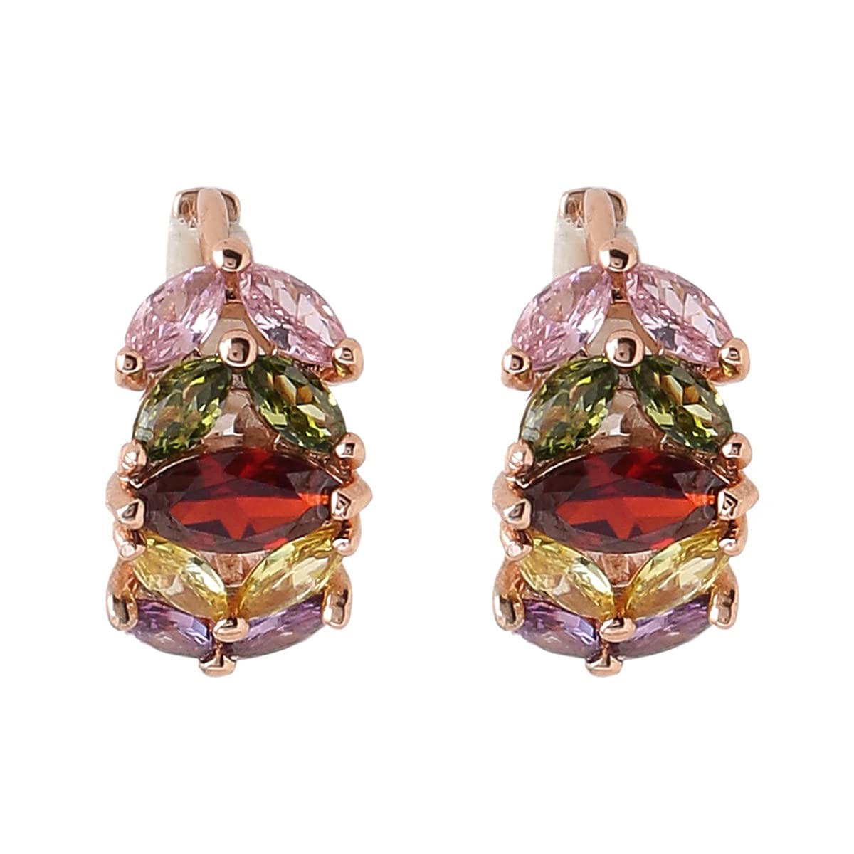 Hoop Earrings for Women Multicolor Swiss Zircon Rose Gold Plated Leafy Shaped Hoop Earrings for Women and Girls
