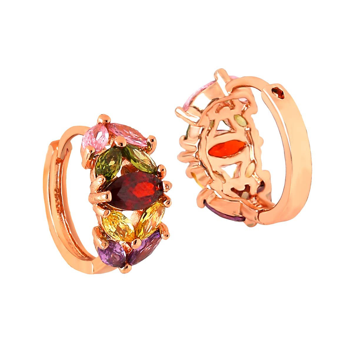 Yellow Chimes Hoop Earrings for Women Multicolor Swiss Zircon Rose Gold Plated Leafy Shaped Hoop Earrings for Women and Girls