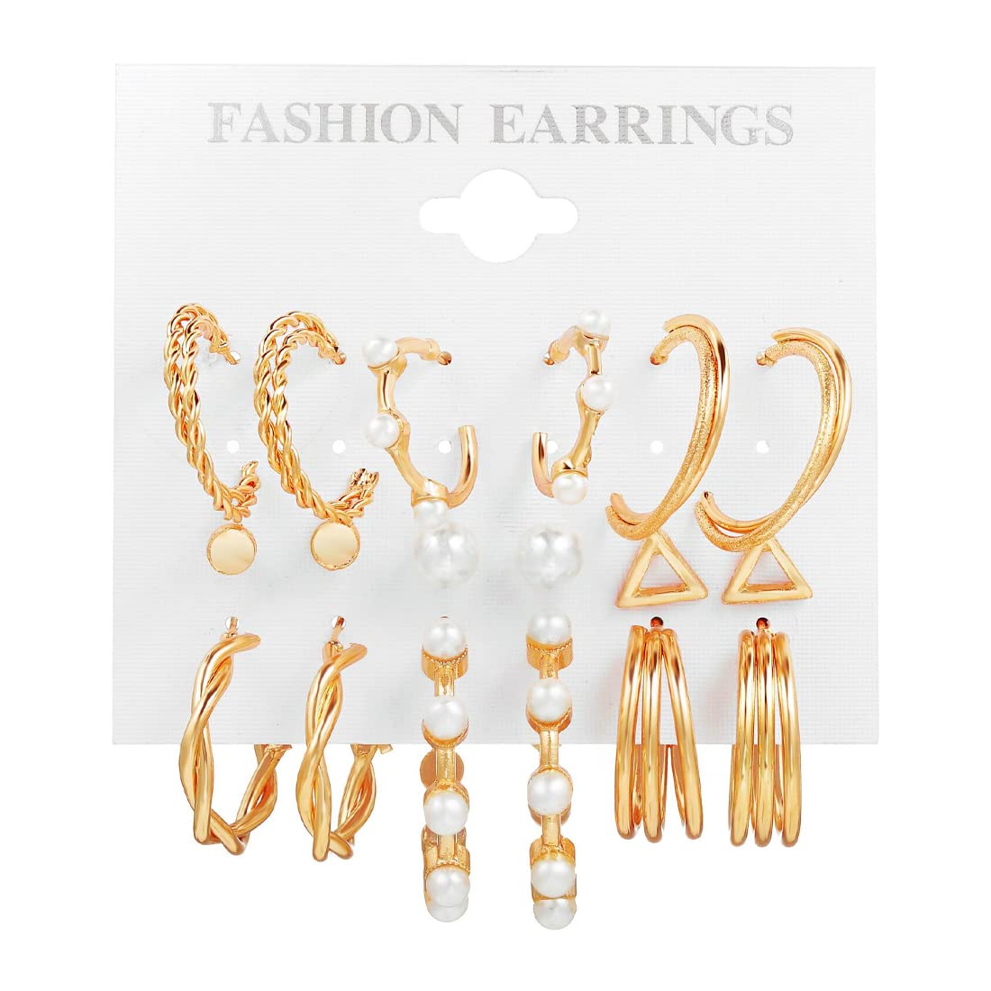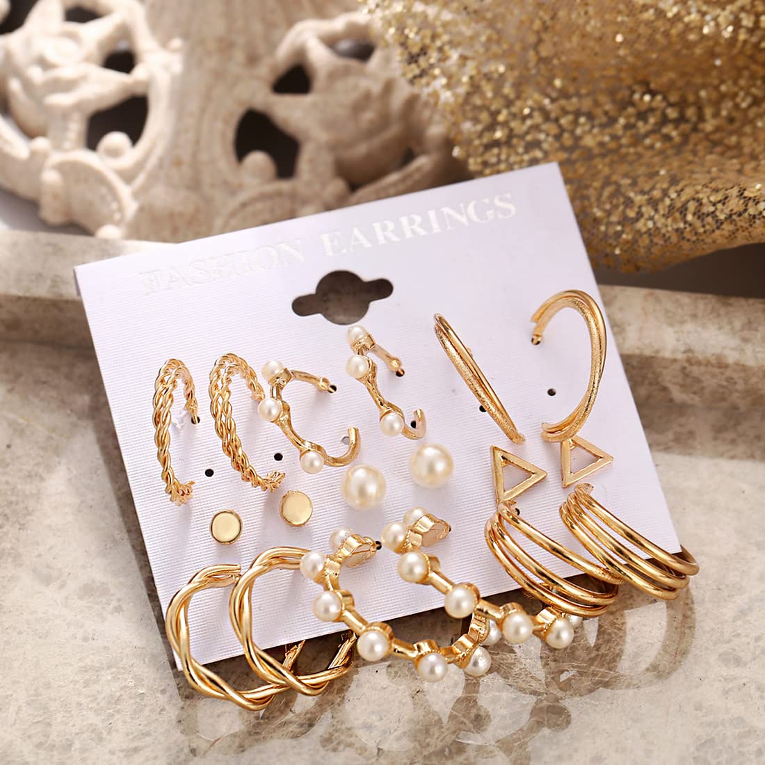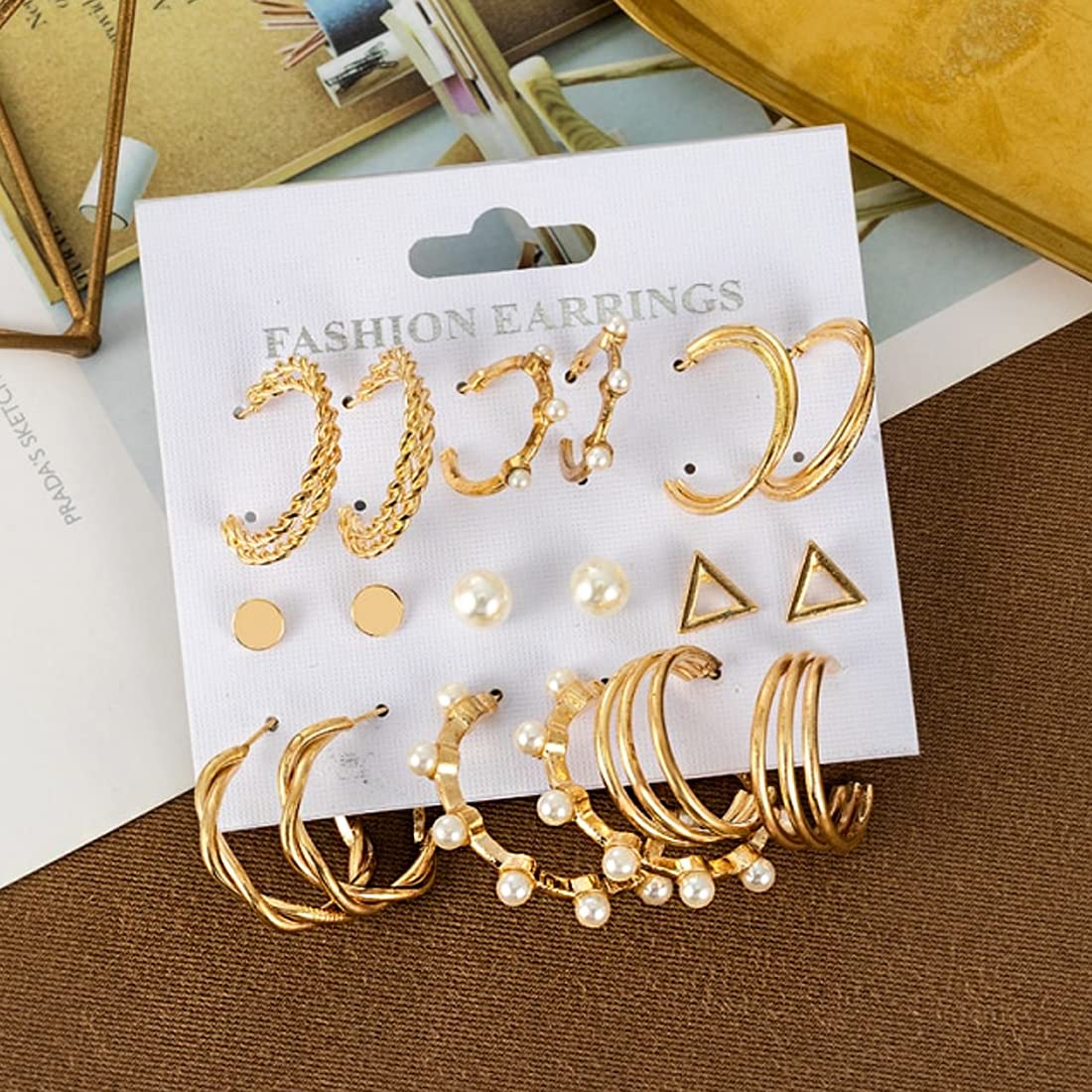 Yellow Chimes Hoop Earrings for Women Set Of 9 Pairs Gold Plated Combo Hoop Stud Earrings Set For Women and Girls Stylish and Trendy Combo of Crystal Pearl Fashion Studs Hoop Earrings- An Eternal Classical Design. These Vintage earrings will complement any Occasion Ethnic Wear/ Daily / College / Party Wear. Beautiful Looks at One Glance - with Intricate High Polish creates Glamorous Reflections and adds Luxurious Looks. Produced under Quality Control; One by One Checking; Focus on Detail Processing. Top Quality/ Latest Trend Design/Anti-Allergy Skin Friendly-: Lead & Nickel Free in compliance with all International Requirements. Gift for her - ideal valentine, birthday, anniversary gift for someone you love, with our packaging box, you do not need to opt-in for any additional gift packaging, the product comes in a beautiful elegant ready-to-gift boxdvisable to store jewellery in a zip lock pouch (air tight pouch), keep away from water perfume and other chemicals and clean it with dry and soft cloth