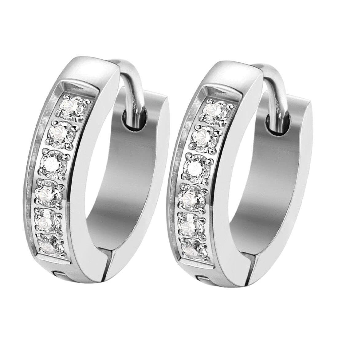 Hoop Earrings for Women Stainless Steel Crystal Silver Hoops Earrings for Women and Girls.