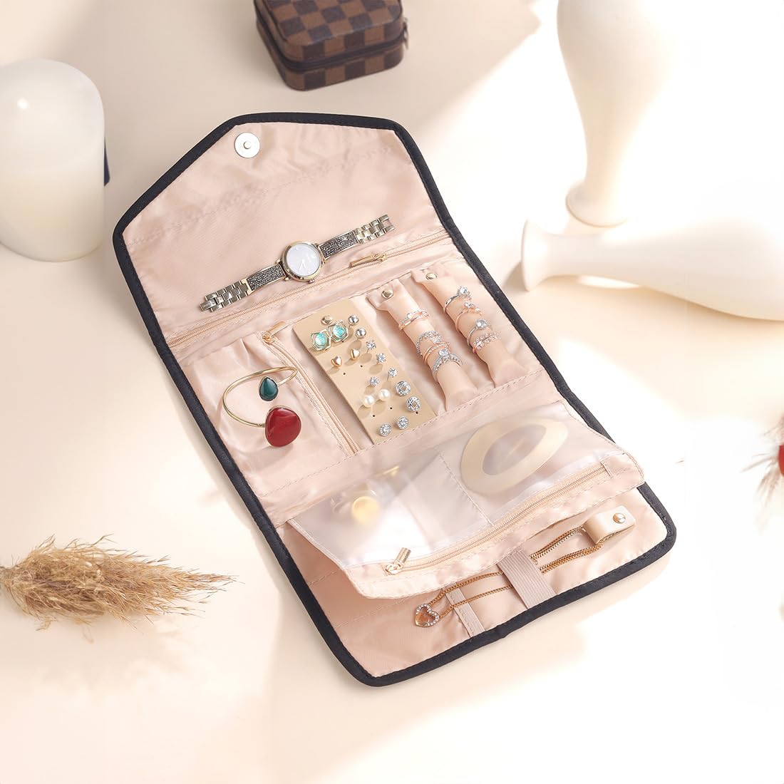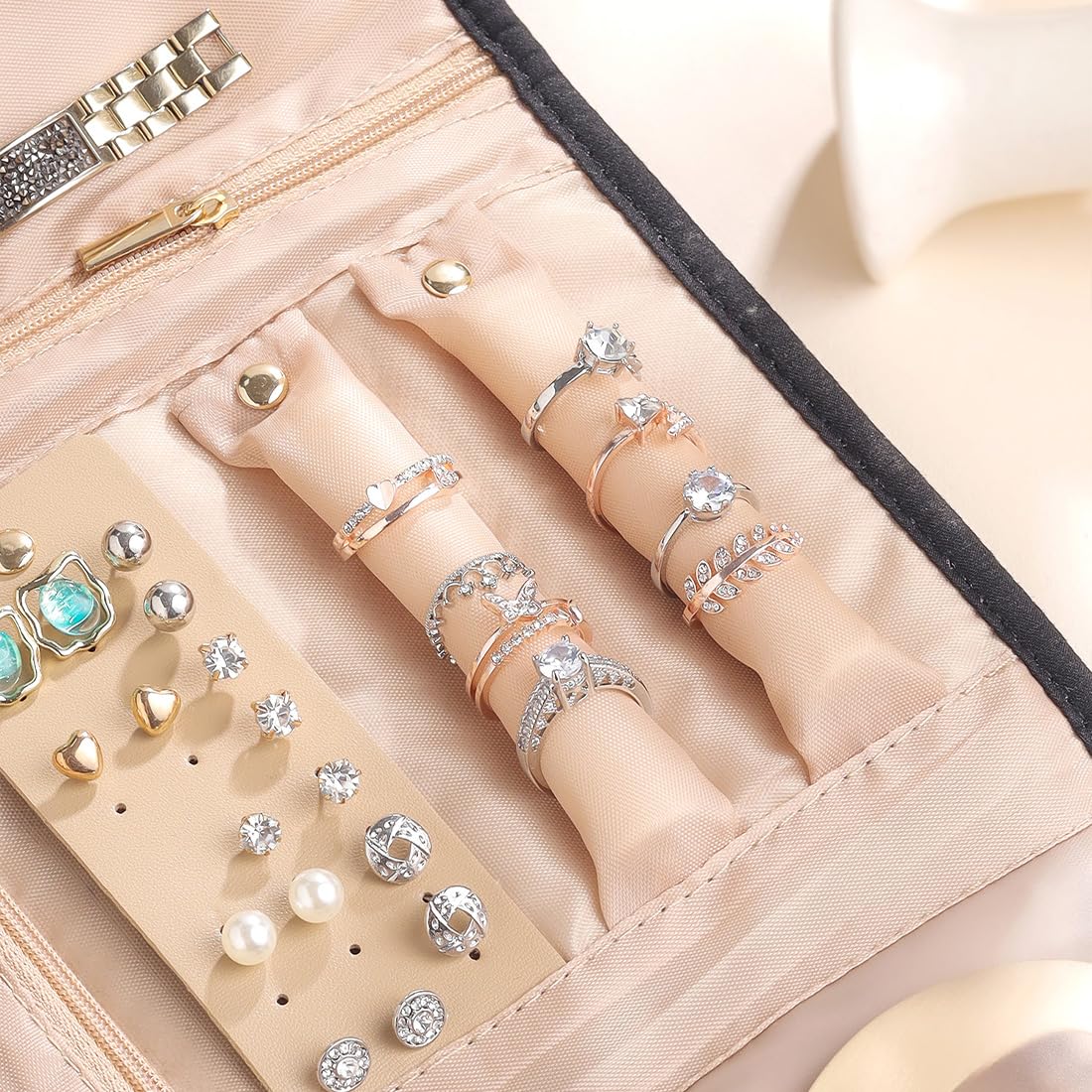 - Smart Storage: Features multiple compartments and zipper pockets for easy organization, ensuring your jewelry and cosmetics are always accessible.