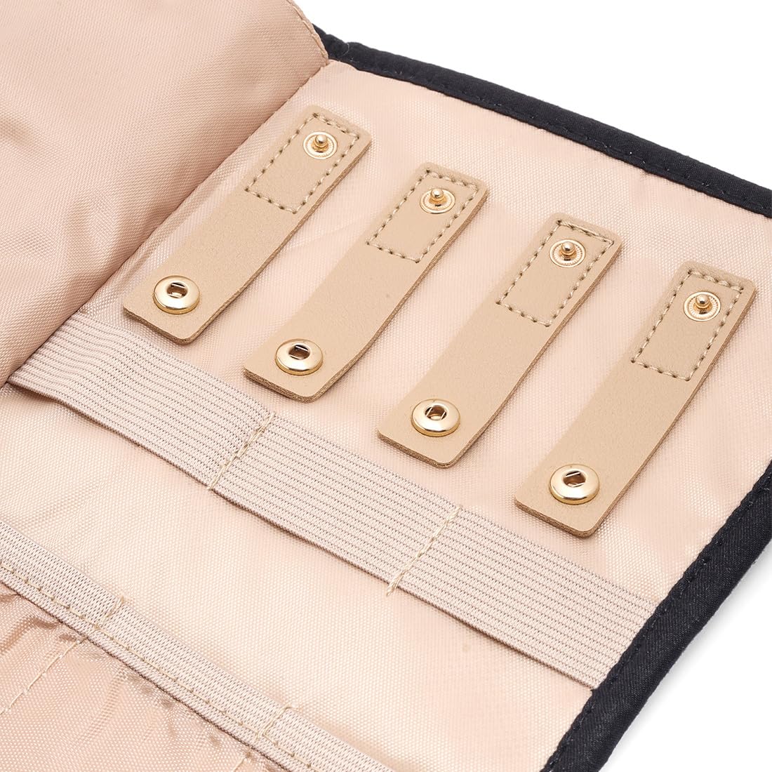 - Material: Made with durable polyester cotton, this compact and tidy jewellery organizer is the perfect size to fit in your cupboard, wardrobe, or drawer. Accessories included.Additional features: Apart from its compact design and durable material, this jewelry organizer also serves as a cosmetics organizer bag. Its black color adds a touch of elegance to any space.