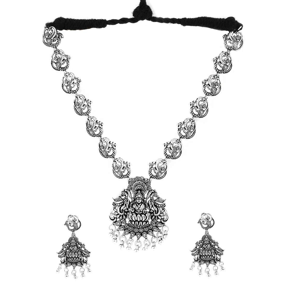 - Ethnic & stylish German Silver Oxidised Necklace Set Silver Lakshmi Design Jewellery Set for women Traditional Necklace Set, Oxidised Temple collection Jewellery set Stunning & Preciously Suitable Looks for all Kinds of Occasions- Party / Festival / Wedding.Our Product is perfect for valentines Anniversary Birthday gift for Women,girlfriend,Wife.
