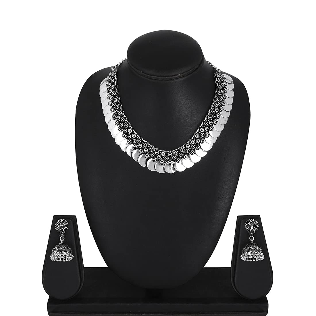 Jewellery Set for Women and Girls Traditional Silver Oxidised Jewellery Set Silver Choker Set | Afghani Style Coin Choker Necklace Set for Women | Birthday Gift For Girls and Women Anniversary Gift for Wife