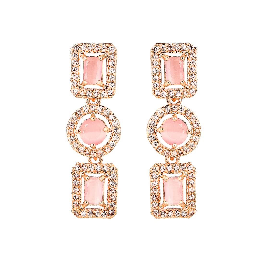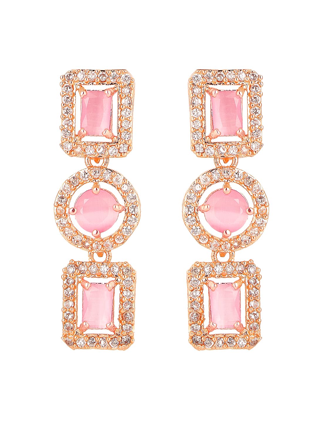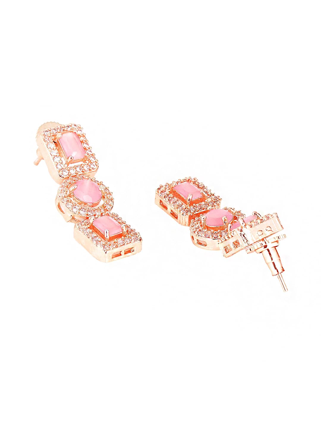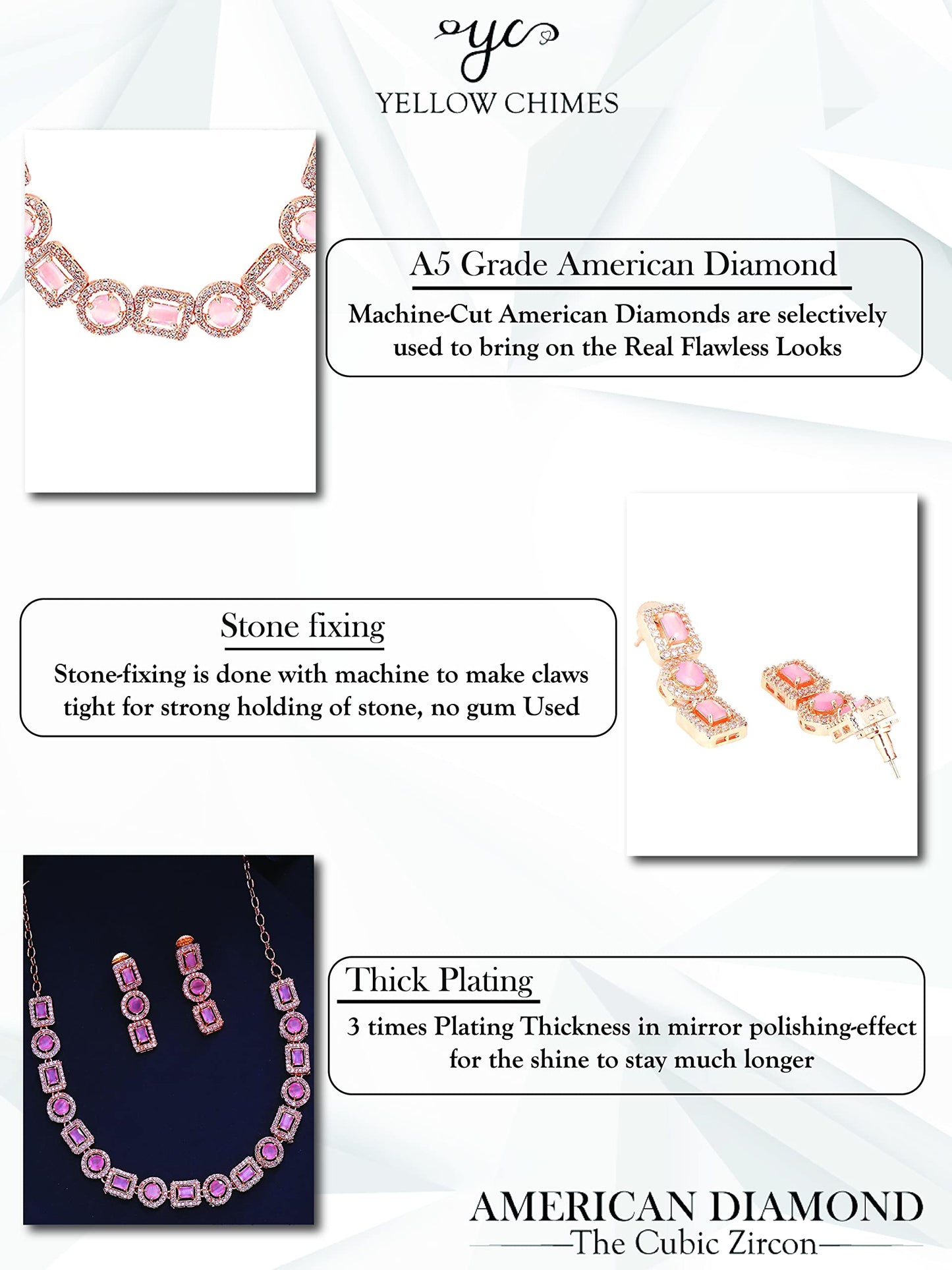 - Elegant and lovely AD Necklace Set Pretty looks American Diamond Pink Necklace Set for women Contemporary Piece,This Rosegold Plated American Diamond Jewellery Set with Drop Earrings A5 Grade clarity is Stunning & Preciously Suitable for all kinds of occasions.Our Product is perfect for valentines Anniversary Birthday gift for Women,girlfriend,Wife.