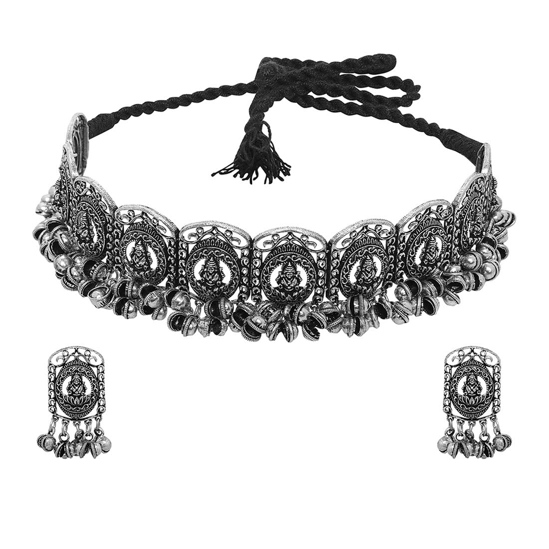 Yellow Chimes Jewellery Set for Women and Girls Traditional Silver Oxidised Jewellery Set Silver Choker Set | Ghungroo Choker Necklace Set for Women | Birthday Gift For Girls and Women Anniversary Gift for Wife