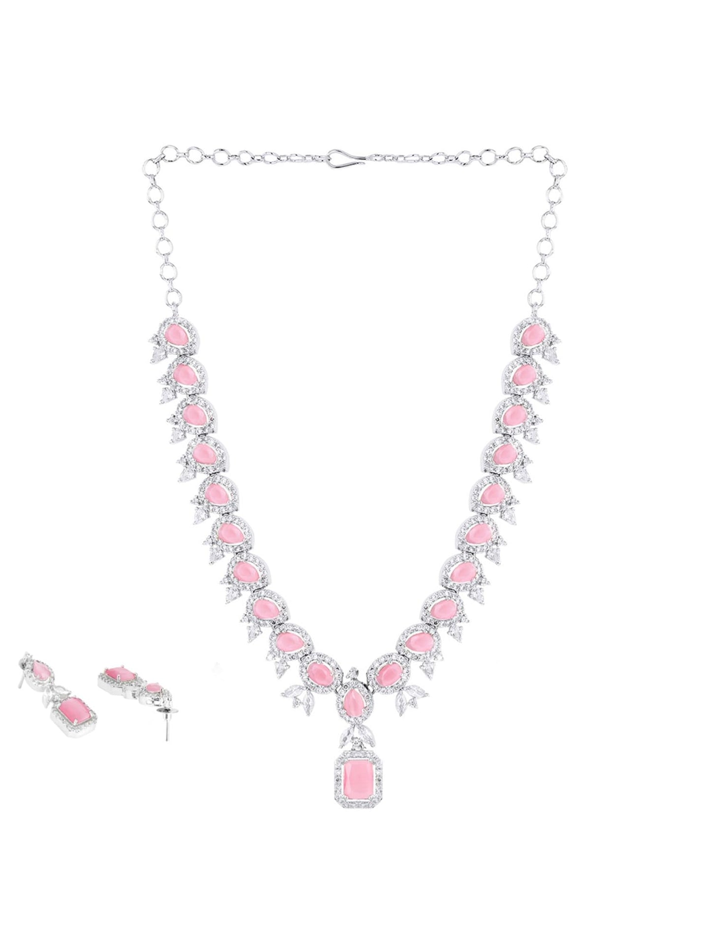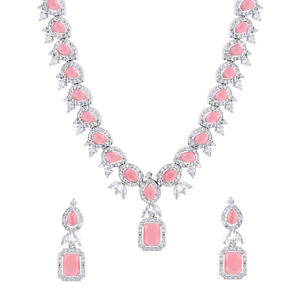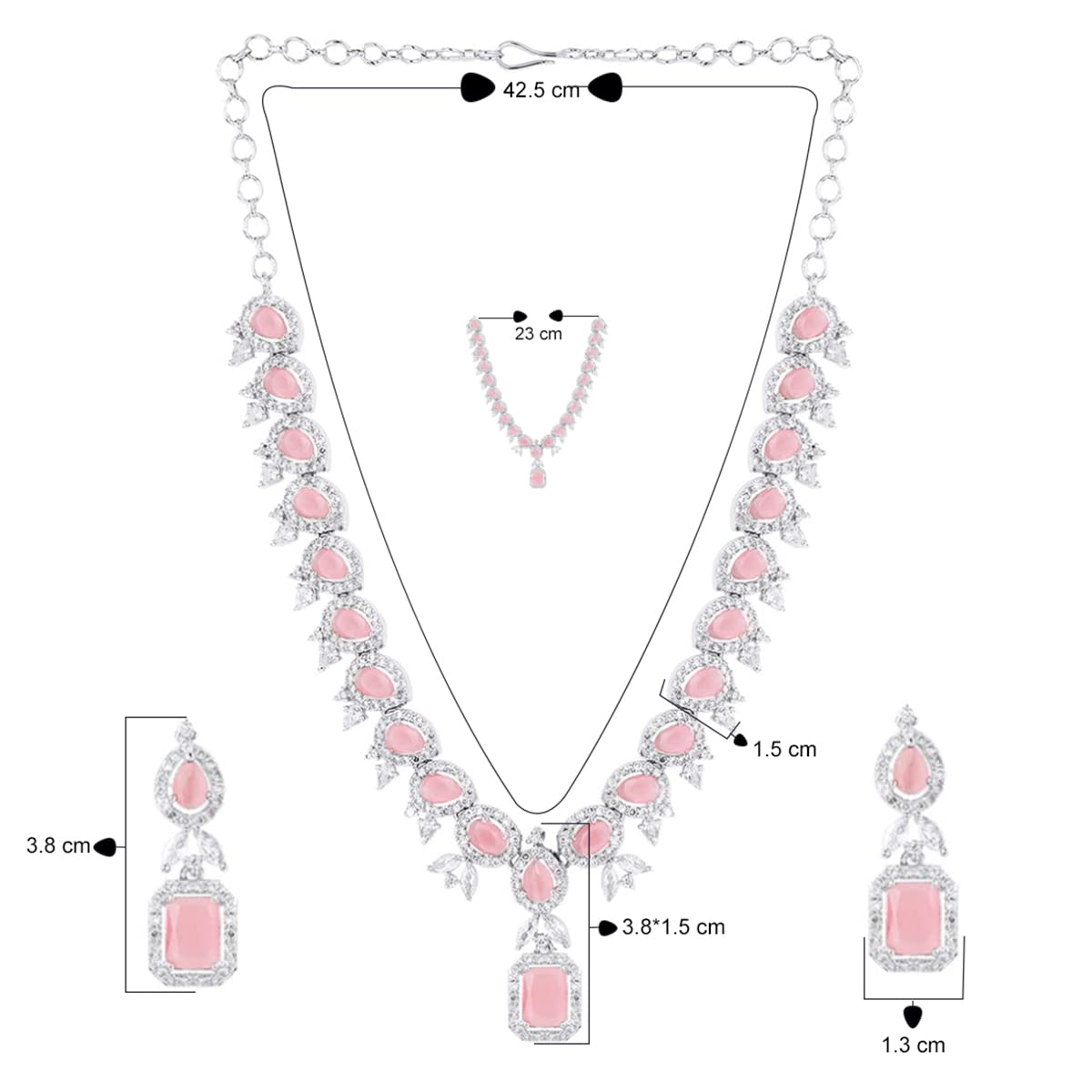 Jewellery Set for Women and Girls Traditional Pink American Diamond Jewellery Set | Rhodium Plated AD Necklace Set for Women | Birthday Gift for girls and women Anniversary Gift for Wife