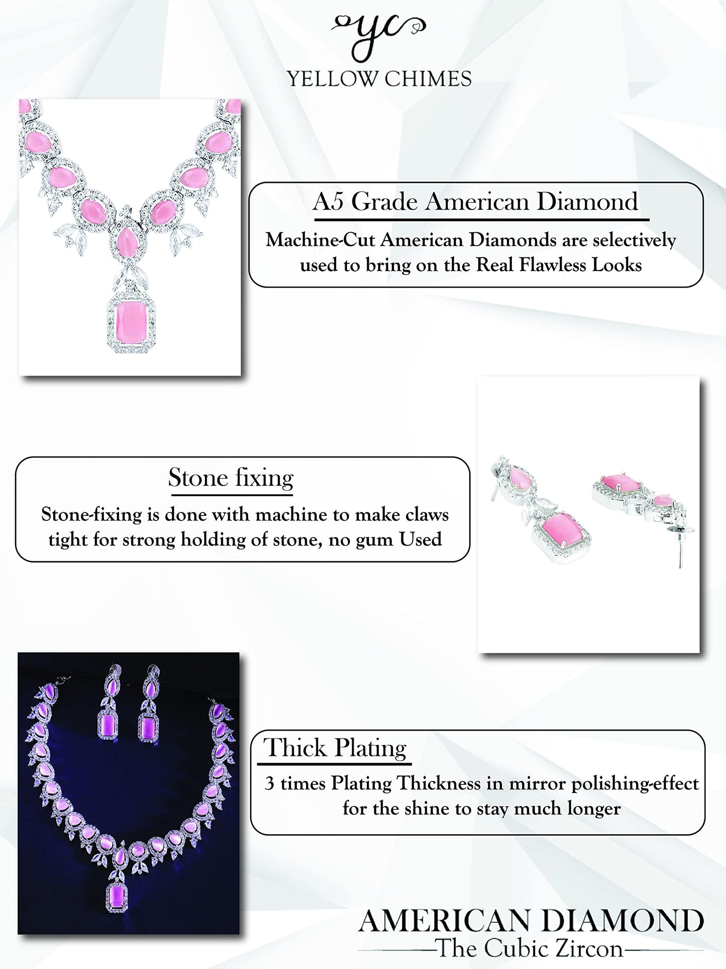 Yellow Chimes Jewellery Set for Women and Girls Traditional Pink American Diamond Jewellery Set | Rhodium Plated AD Necklace Set for Women | Birthday Gift for girls and women Anniversary Gift for Wife