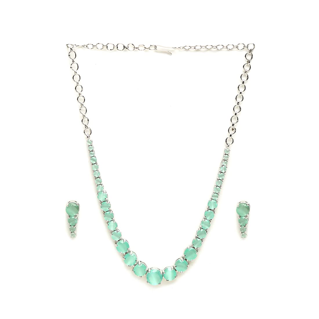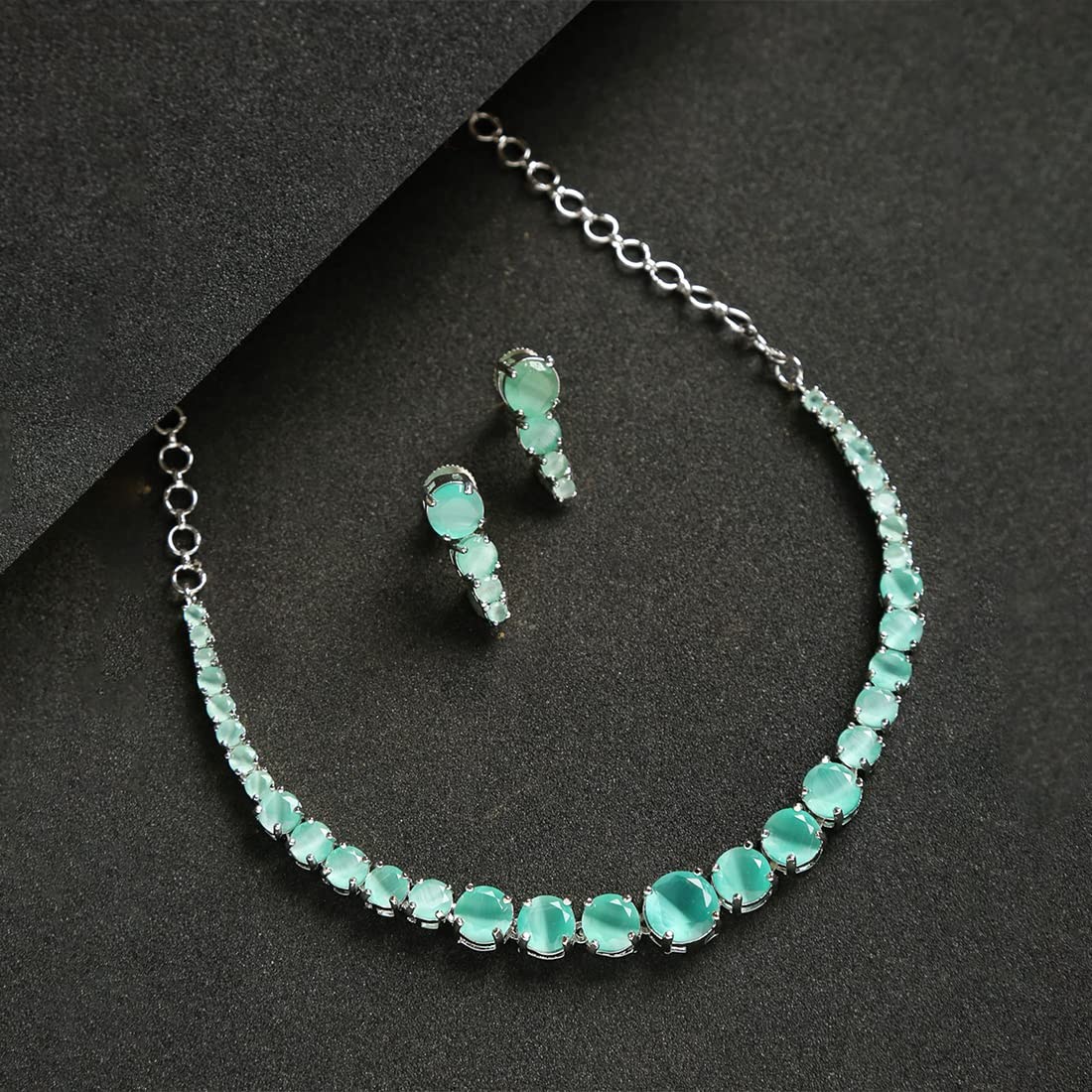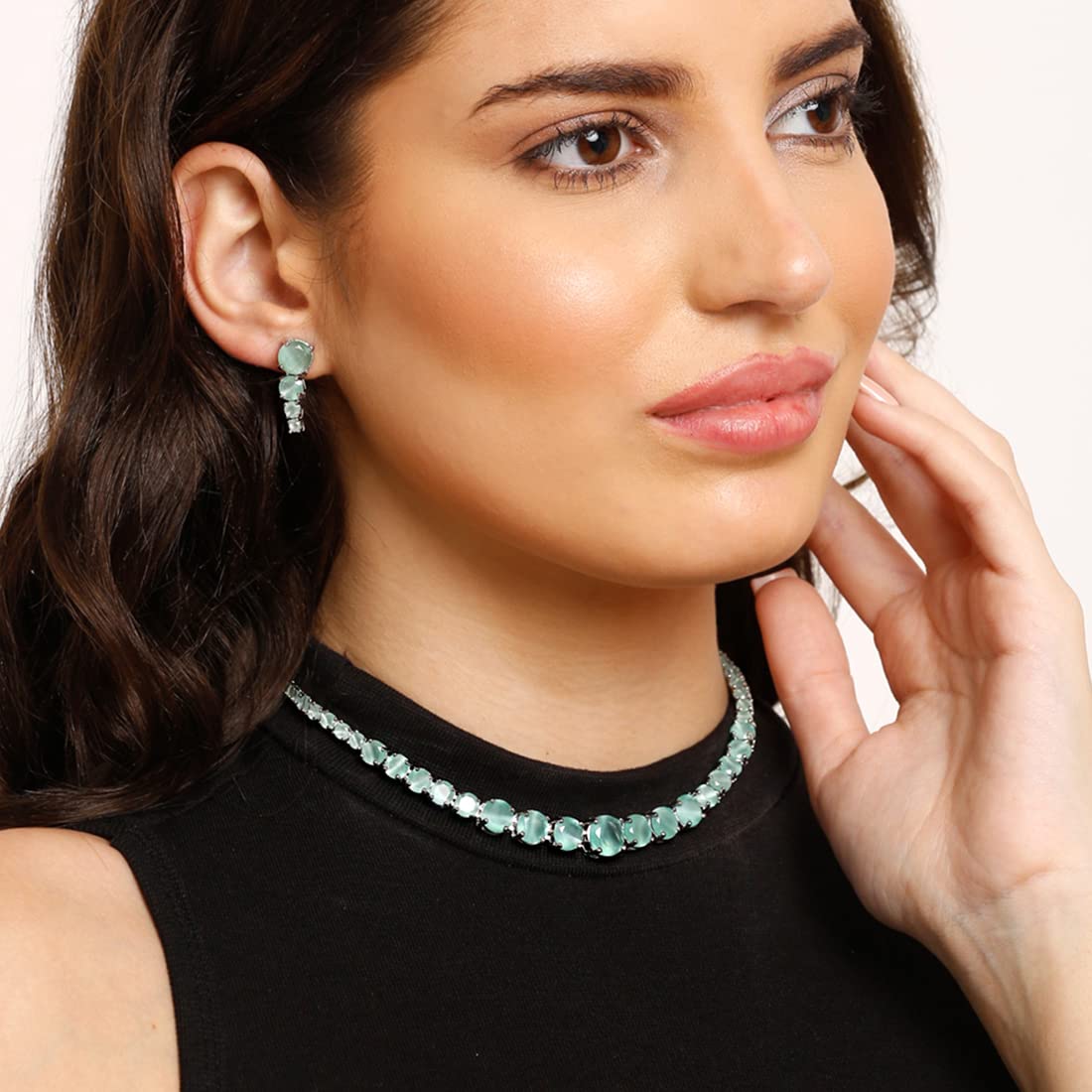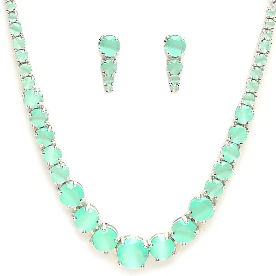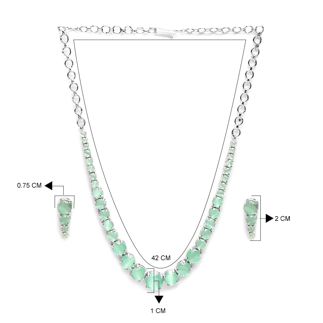 Jewellery Set for Women and Girls Traditional Mint Green American Diamond Jewellery Set | Rhodium Plated AD Necklace Set for Women | Birthday Gift for girls and women Anniversary Gift for Wife