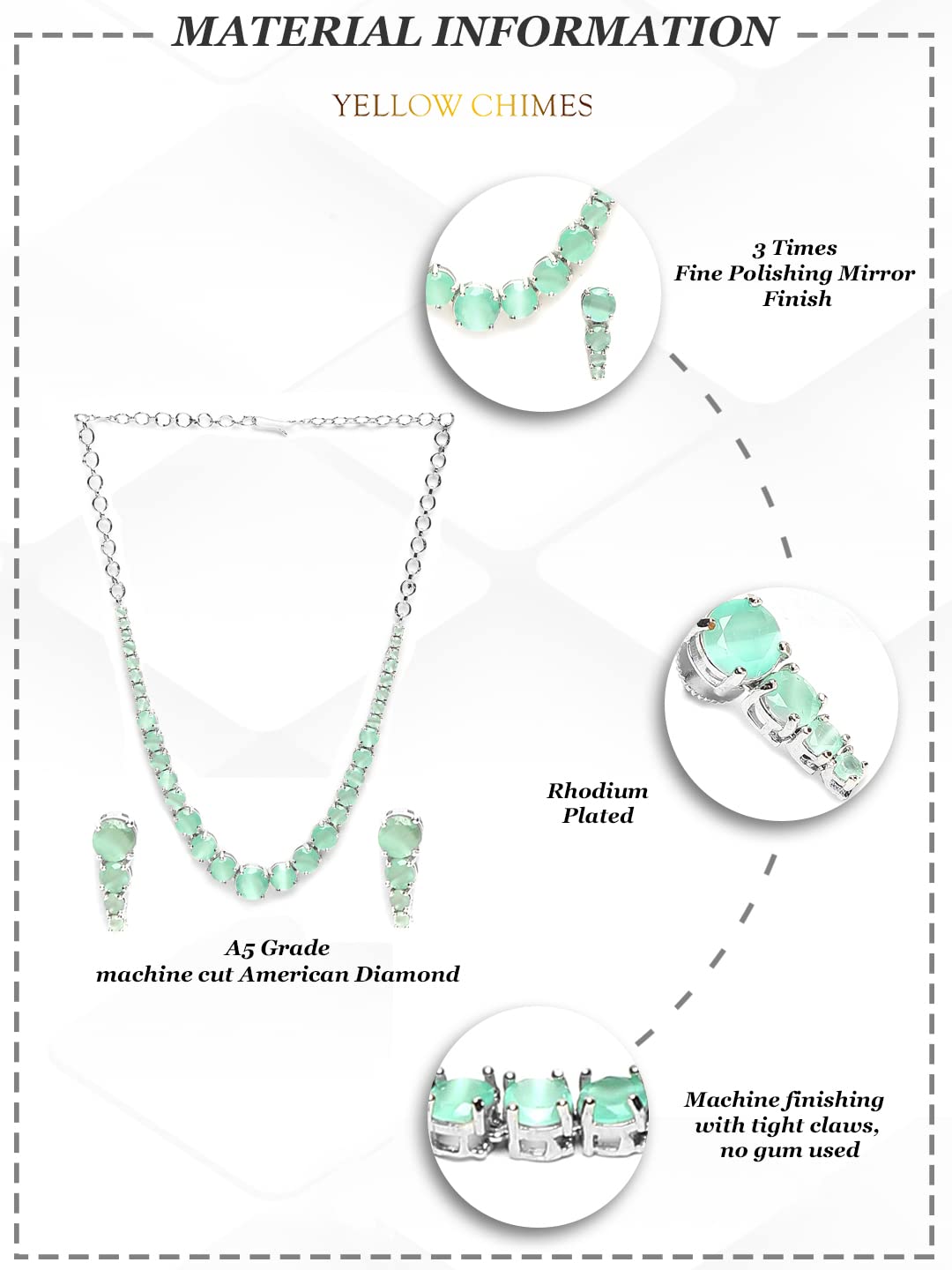 Yellow Chimes Jewellery Set for Women and Girls Traditional Mint Green American Diamond Jewellery Set | Rhodium Plated AD Necklace Set for Women | Birthday Gift for girls and women Anniversary Gift for Wife