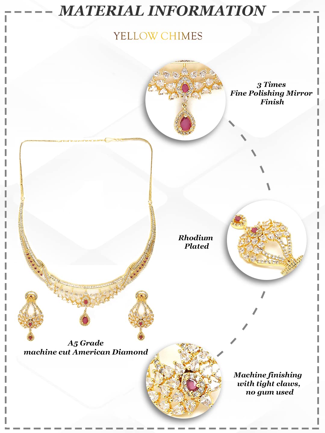 Yellow Chimes Jewellery Set for Women and Girls American Diamond Jewellery Set | Gold Plated Authentic AD Necklace Set for Women | Birthday Gift for girls and women Anniversary Gift for Wife