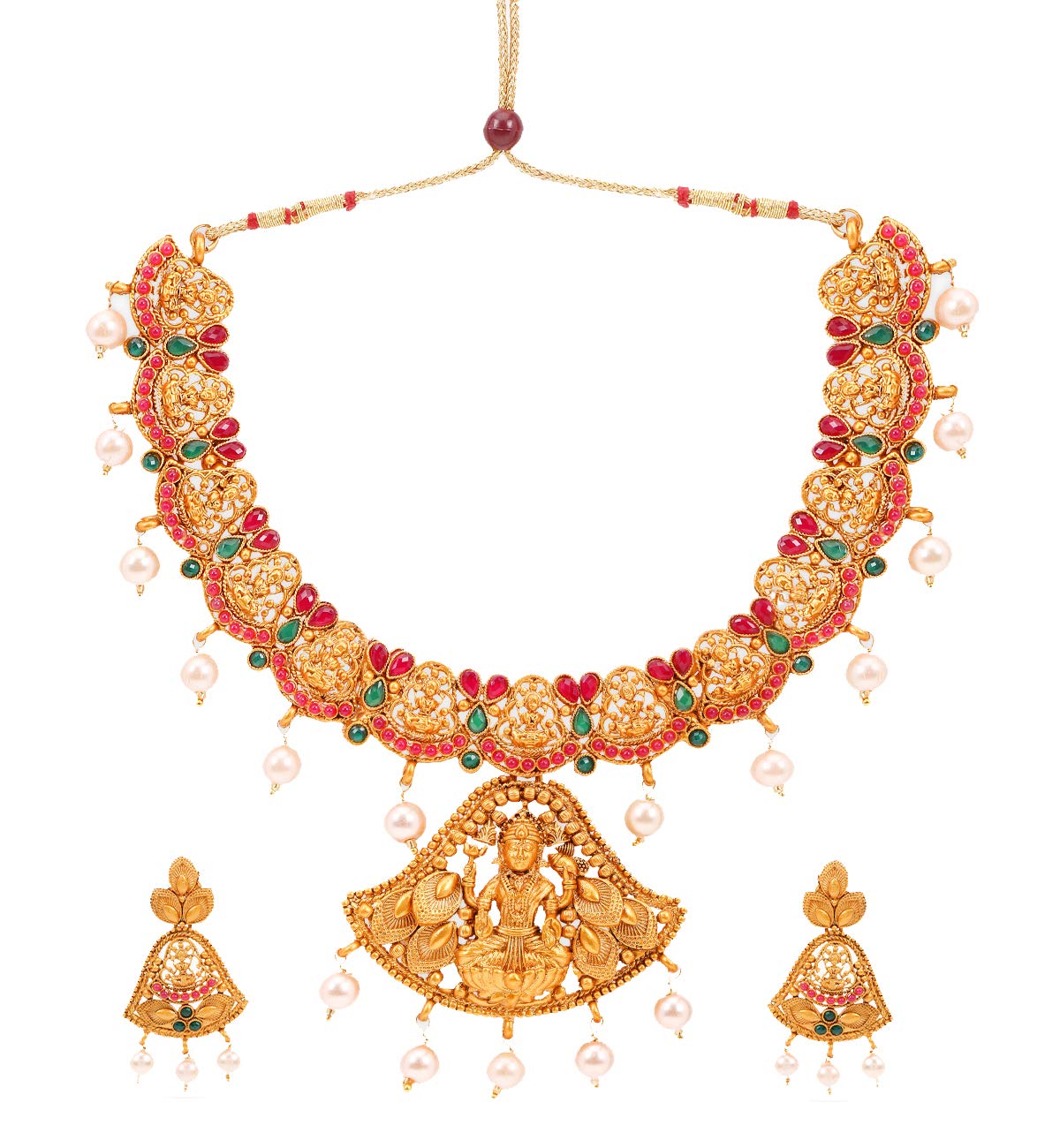 - Traditioanl temple jewelry set god of heavy laxmi devi necklace set wedding wear ethnic choker necklace set.Beautiful Looks at One Glance- with Intricate High Polish creates Glamorous Reflections and adds Luxurious Looks.