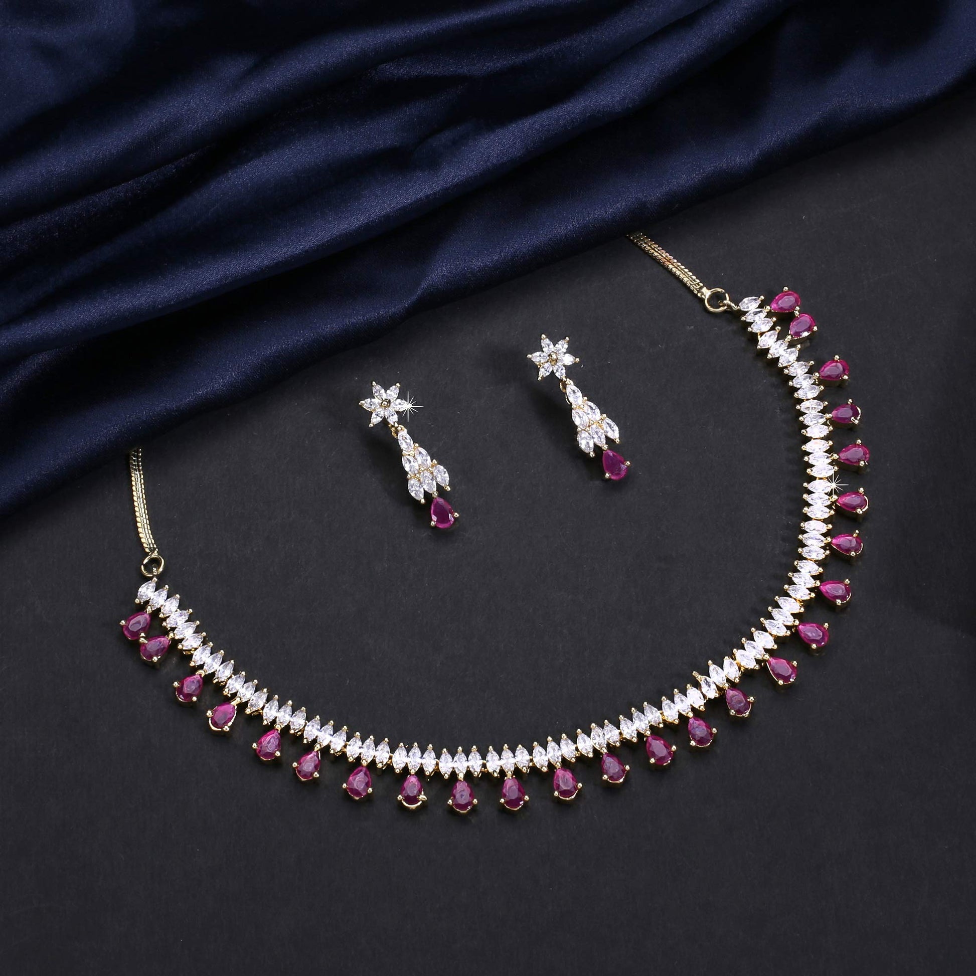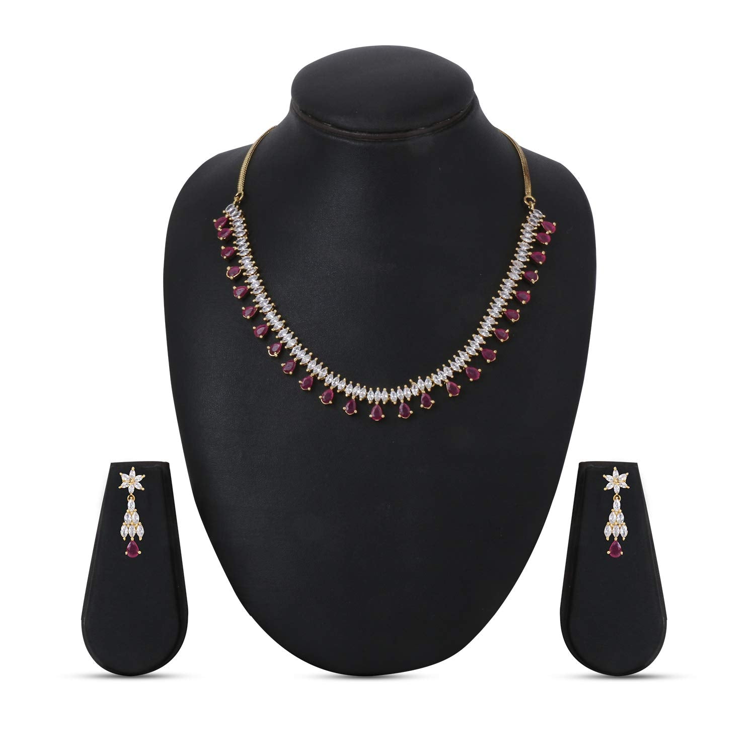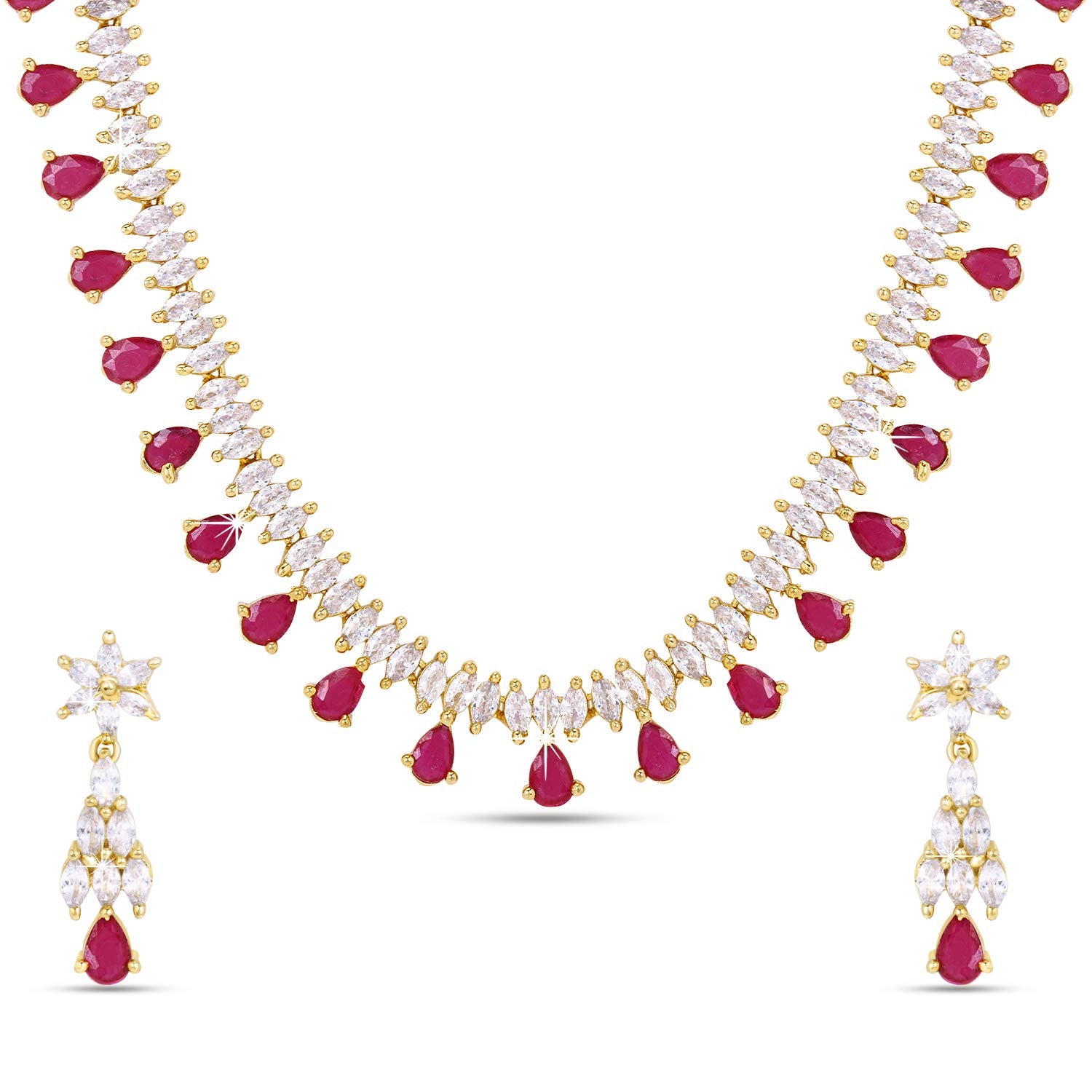 - Unique & Classic Look Pink American Diamond Necklace set for women ,This gold plated necklace set with earrings for AD/Americal Diamond jewellery set for women sparkling necklace set A5 grade clarity is stunning and preciously suitable for all kinds of occasions.Our Product is perfect for valentines Anniversary Birthday gift for Women,girlfriend,Wife.