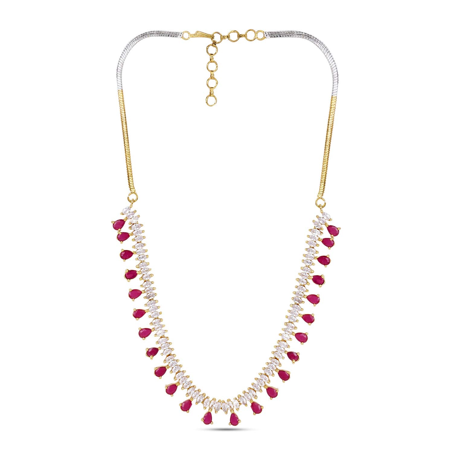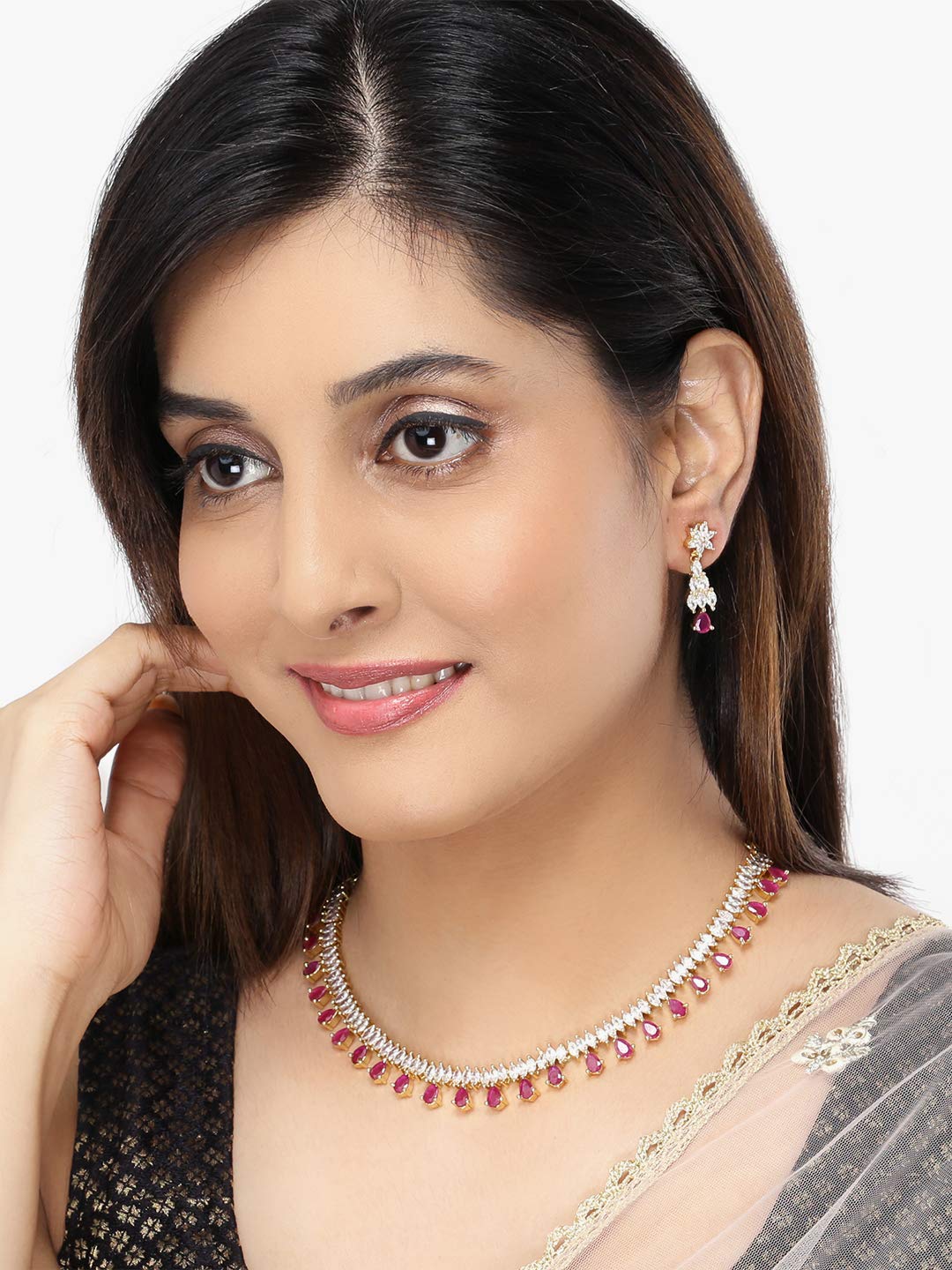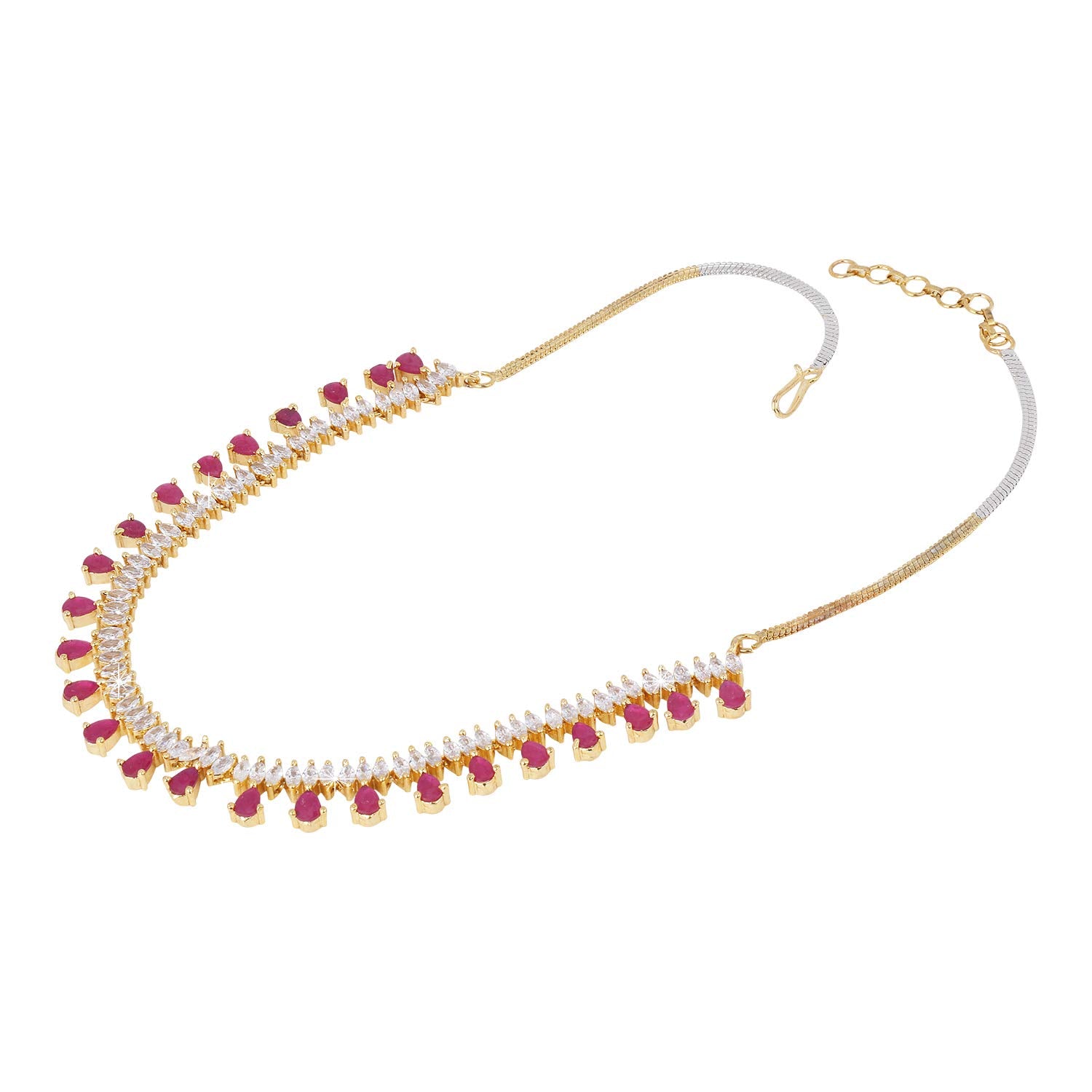 - Unique & Classic Look Pink American Diamond Necklace set for women ,This gold plated necklace set with earrings for AD/Americal Diamond jewellery set for women sparkling necklace set A5 grade clarity is stunning and preciously suitable for all kinds of occasions.Our Product is perfect for valentines Anniversary Birthday gift for Women,girlfriend,Wife.