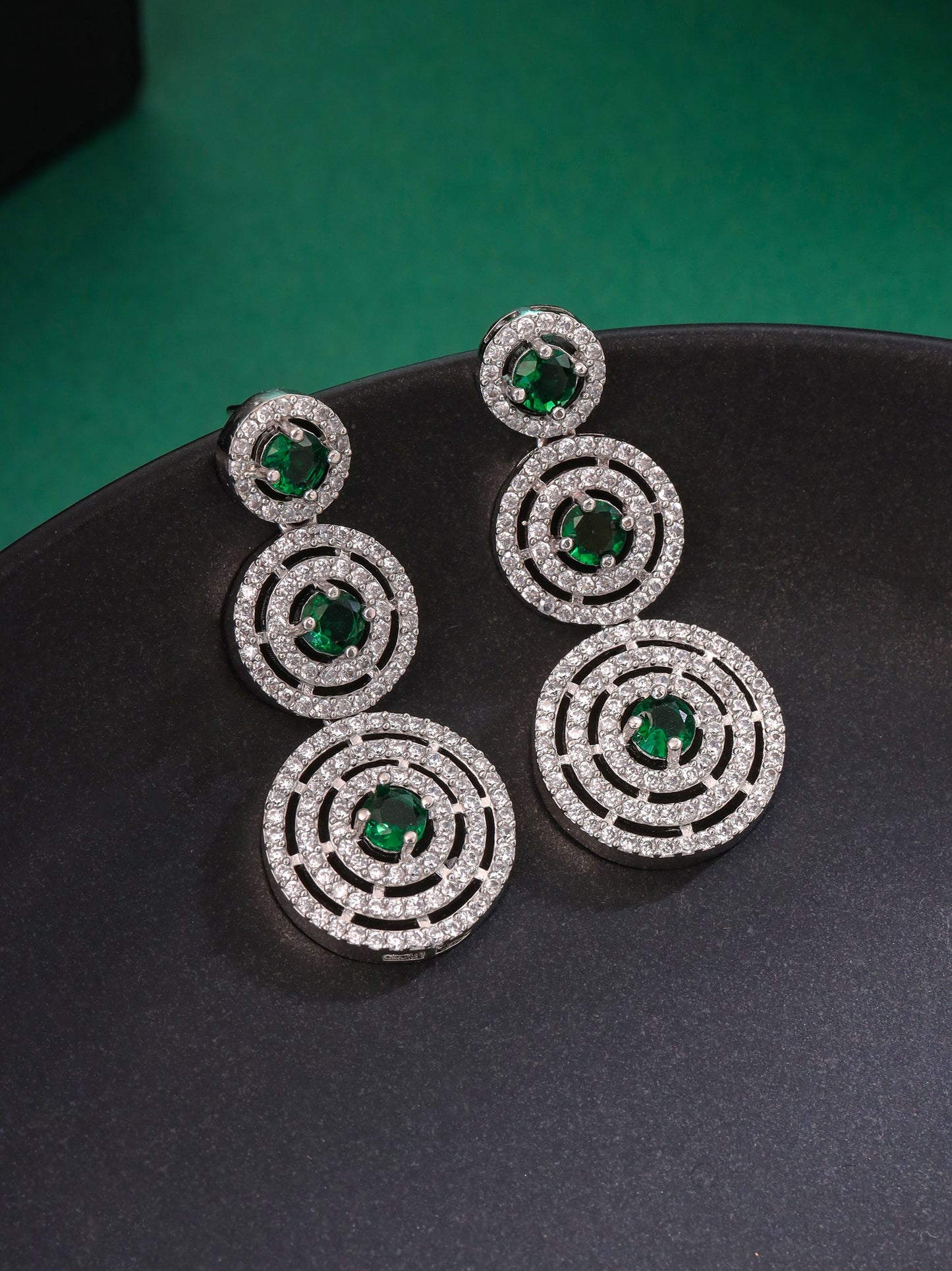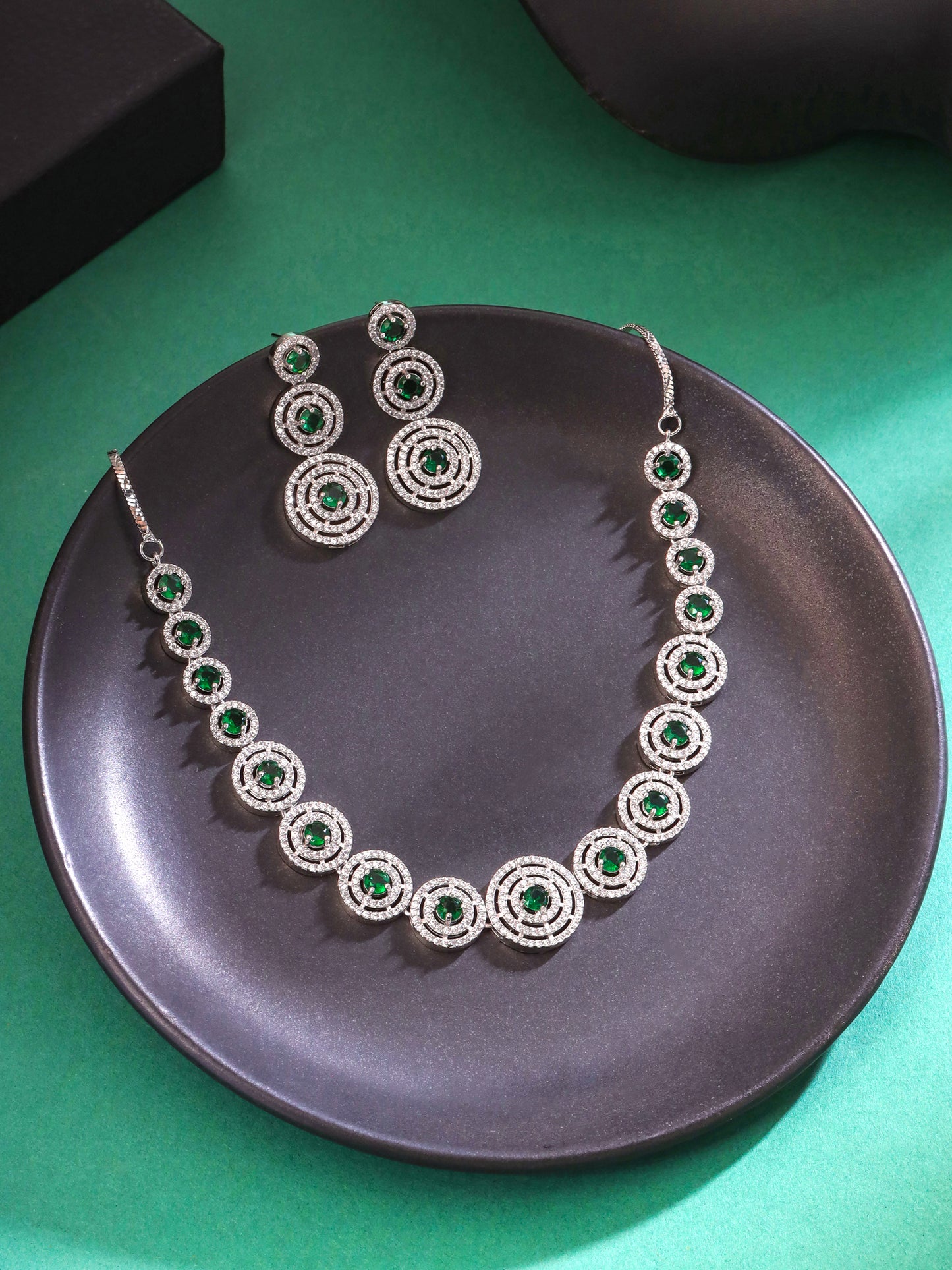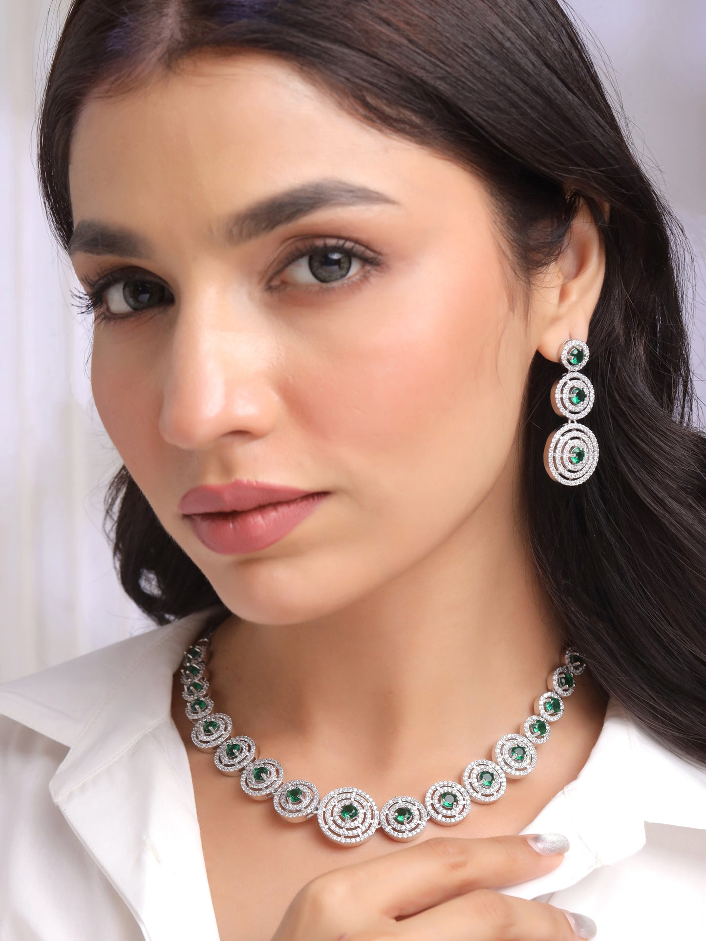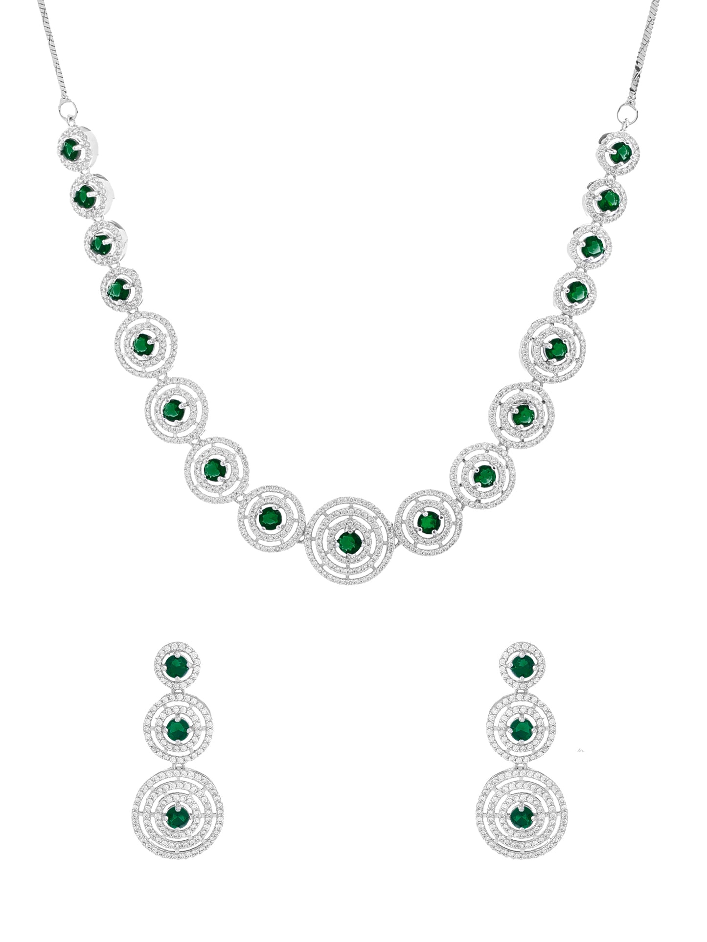 American Diamond Necklace Set For Women | Green Stone Silver Jewellery Set For Women | Diamond Necklace Set | Birthday Gift for Girls Anniversary Gift for Wife