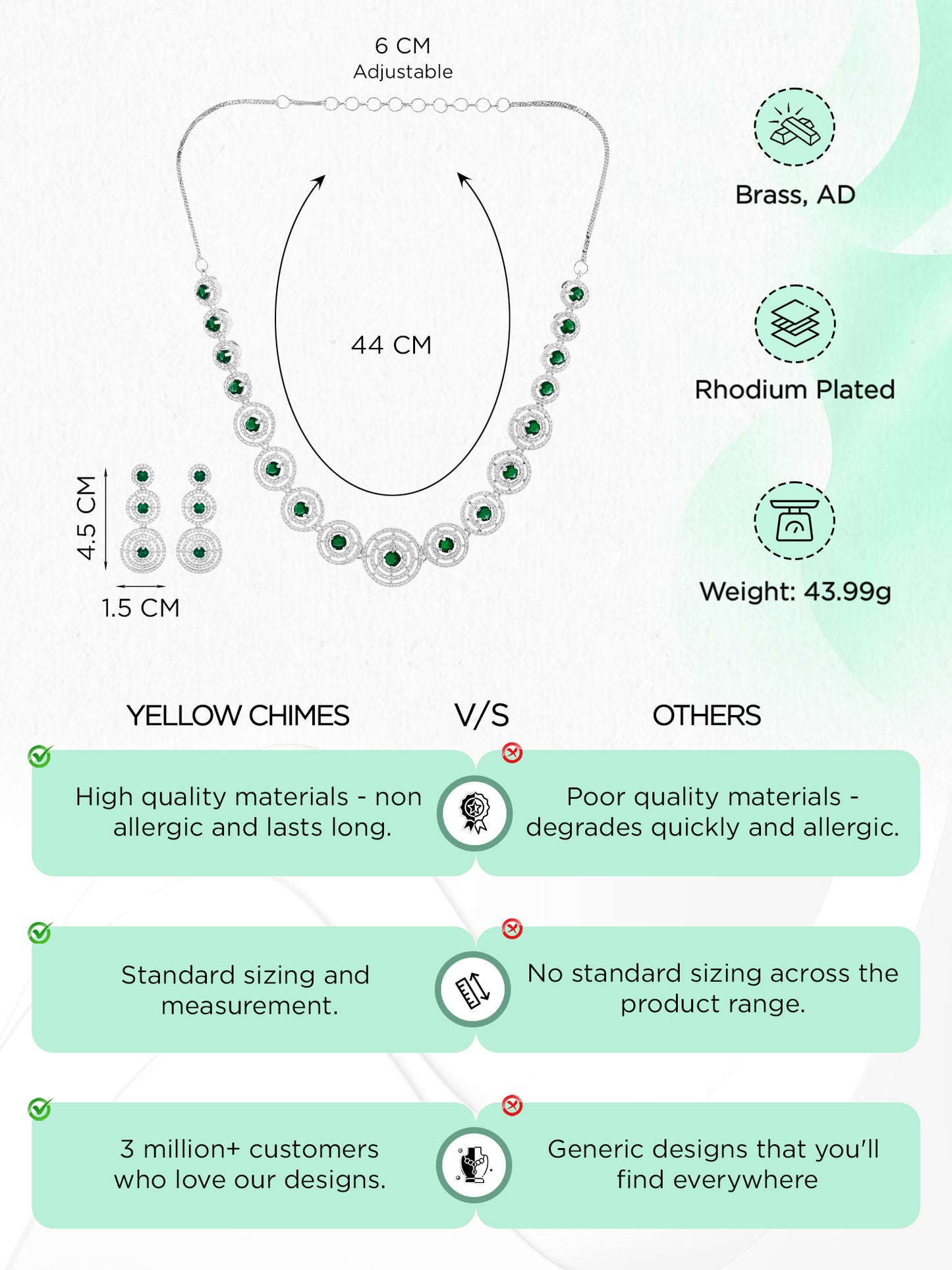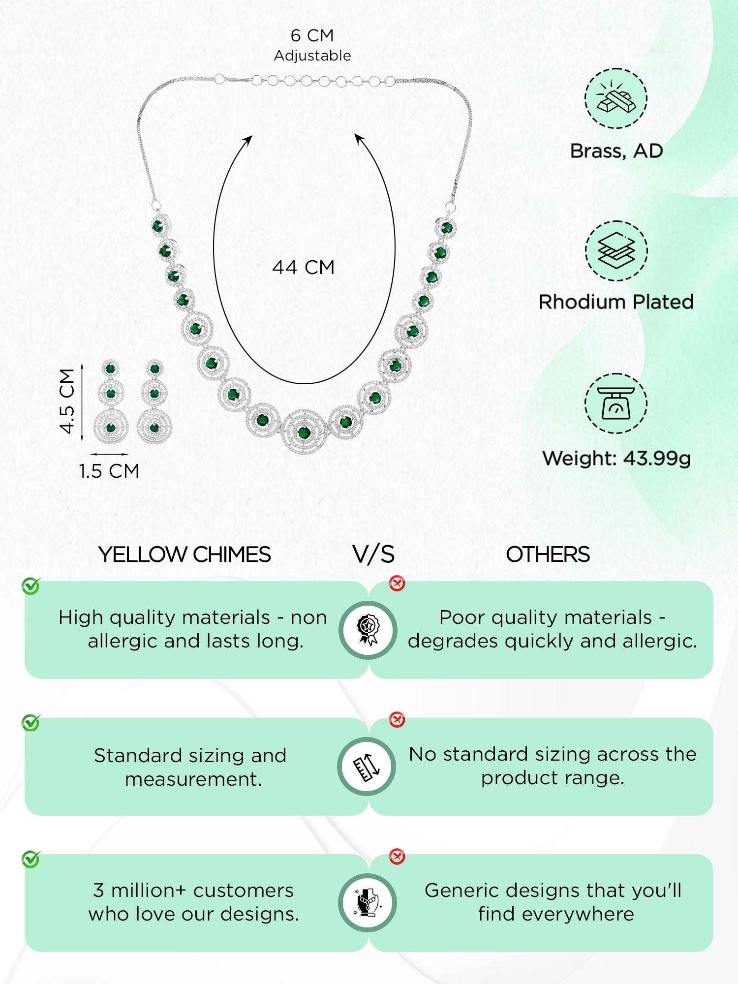 Yellow Chimes American Diamond Necklace Set For Women | Green Stone Silver Jewellery Set For Women | Diamond Necklace Set | Birthday Gift for Girls Anniversary Gift for Wife
