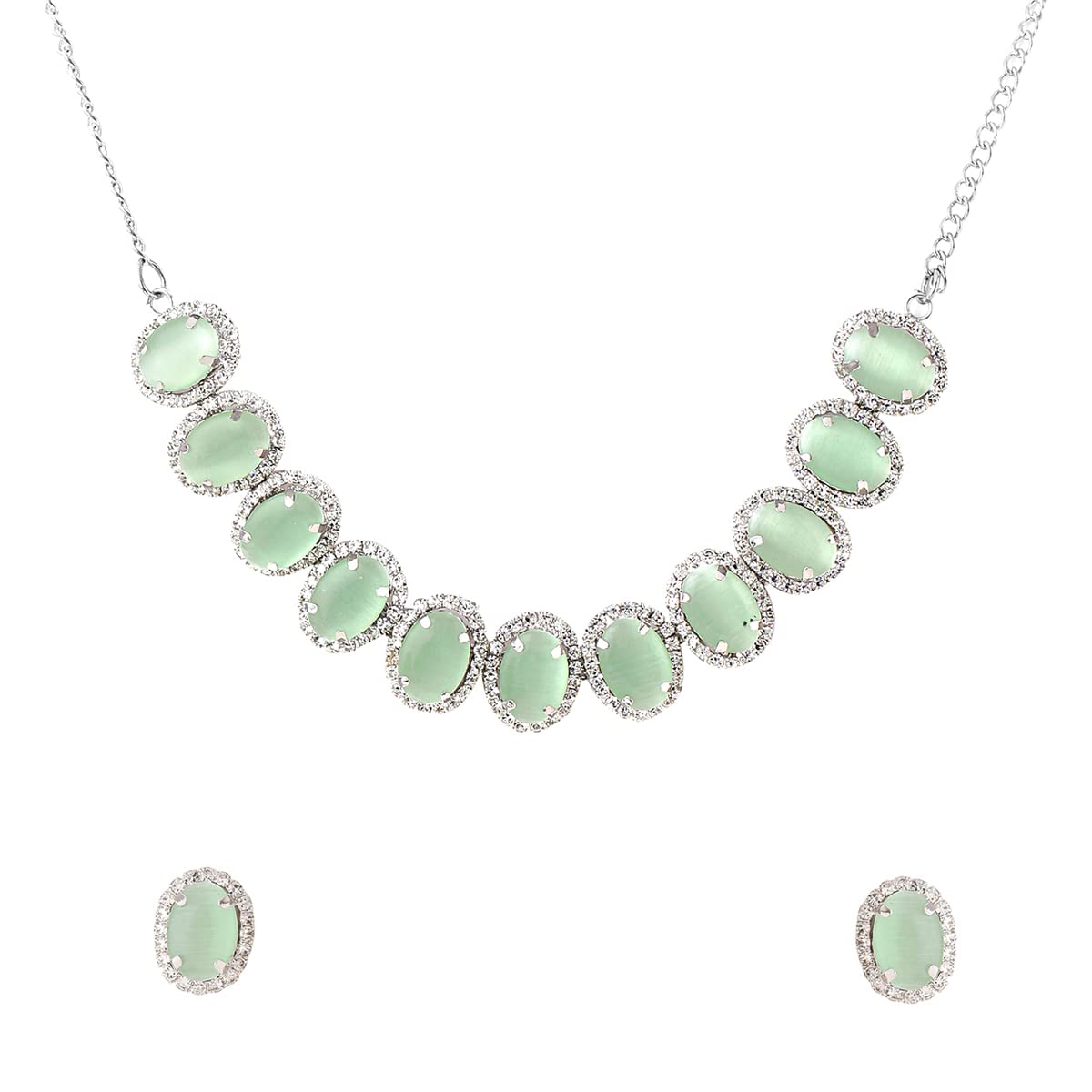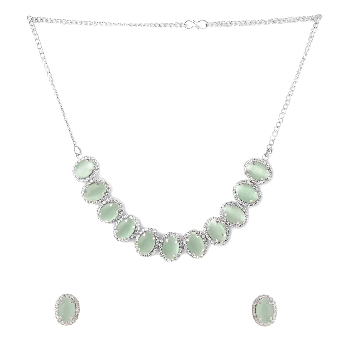 Yellow Chimes Jewellery Set for Women and Girls Crystal Jewellery Set for Women| Gold Plated Green Stone Choker Necklace Set | Birthday Gift for girls and women Anniversary Gift for Wife