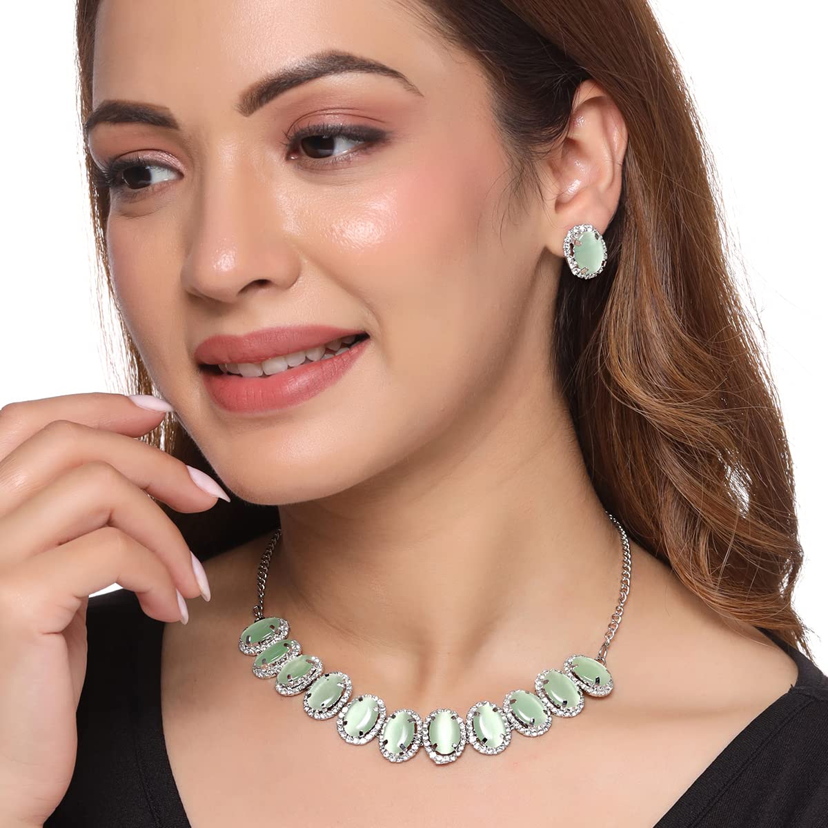 Jewellery Set for Women and Girls Crystal Jewellery Set for Women| Gold Plated Green Stone Choker Necklace Set | Birthday Gift for girls and women Anniversary Gift for Wife