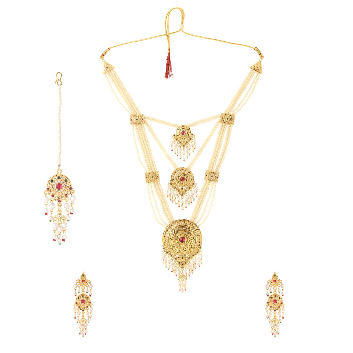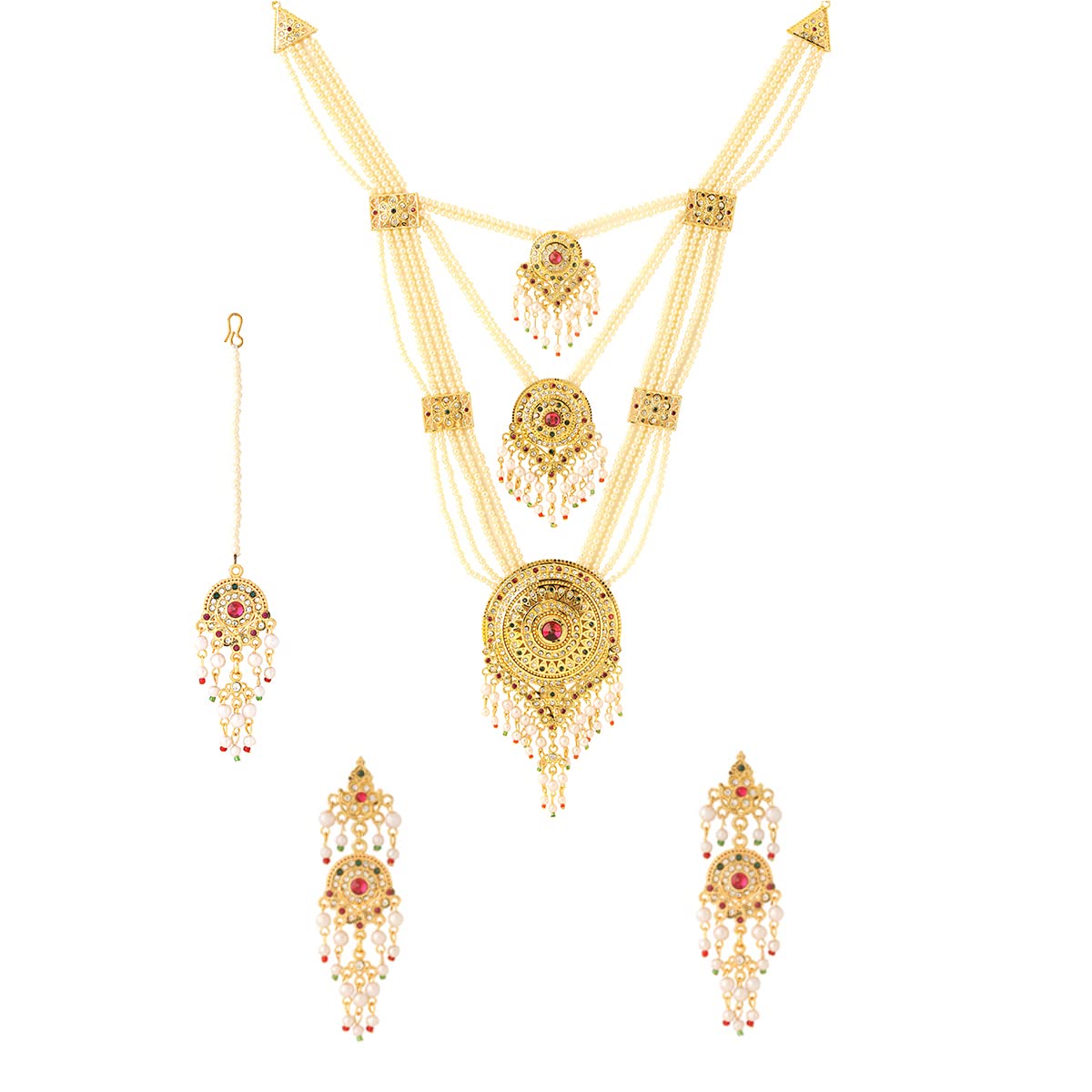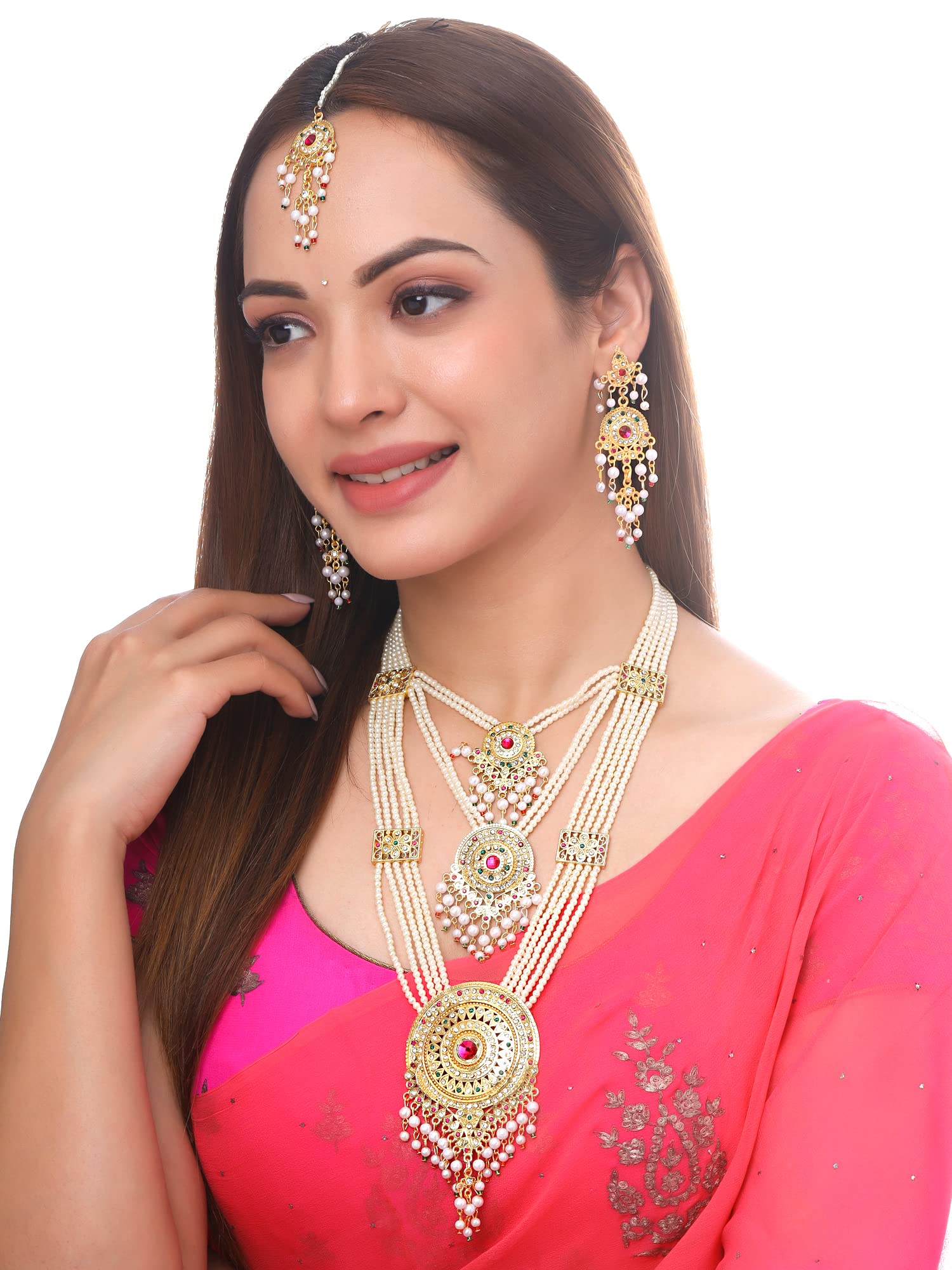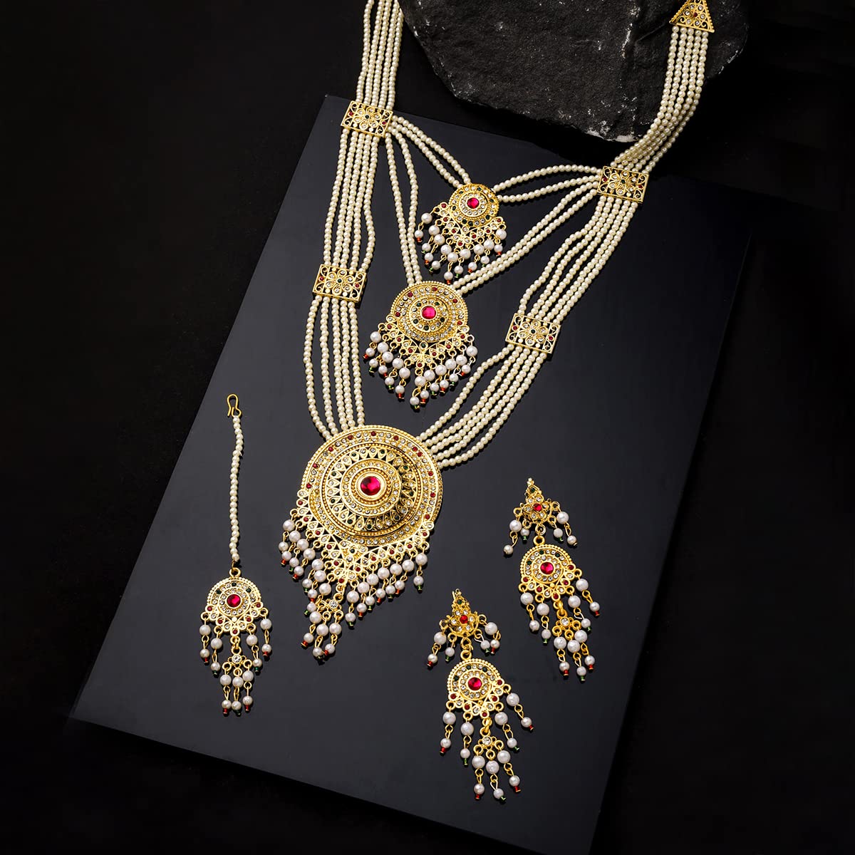 - Complete Set: Includes a beautifully crafted necklace, matching earrings, and a maangtikka to enhance your overall look.