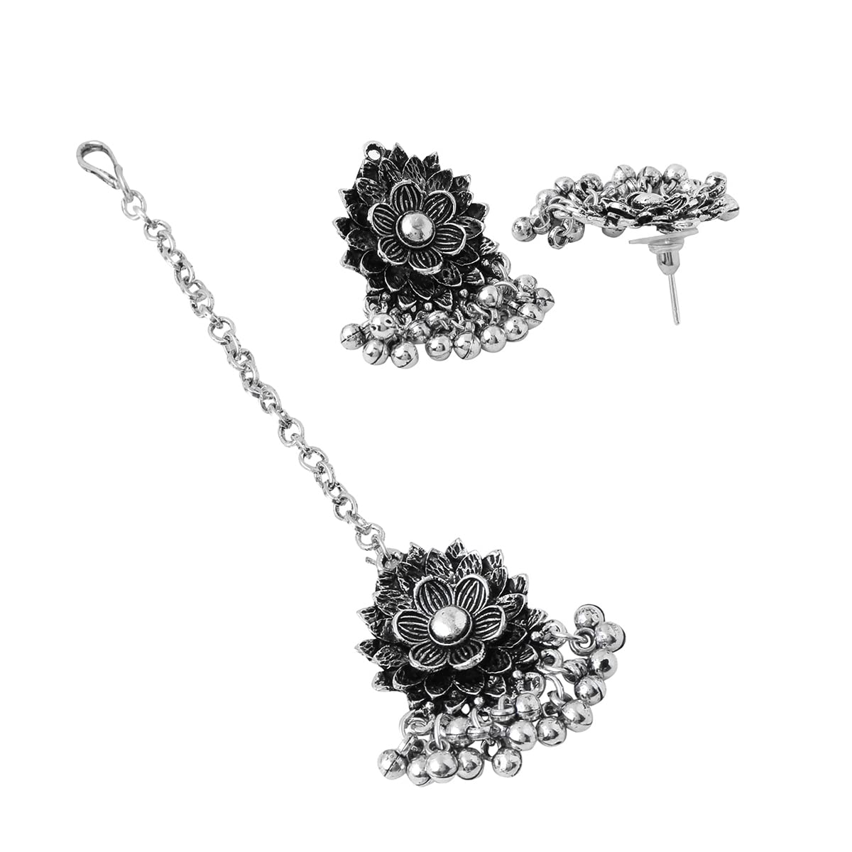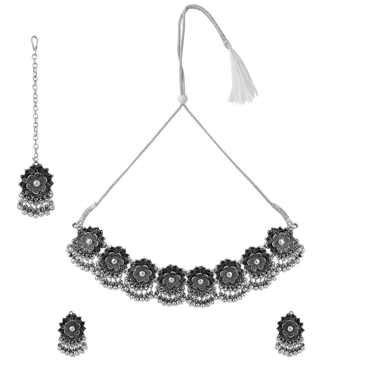 Yellow Chimes Traditional Silver Oxidised Jewellery Set
