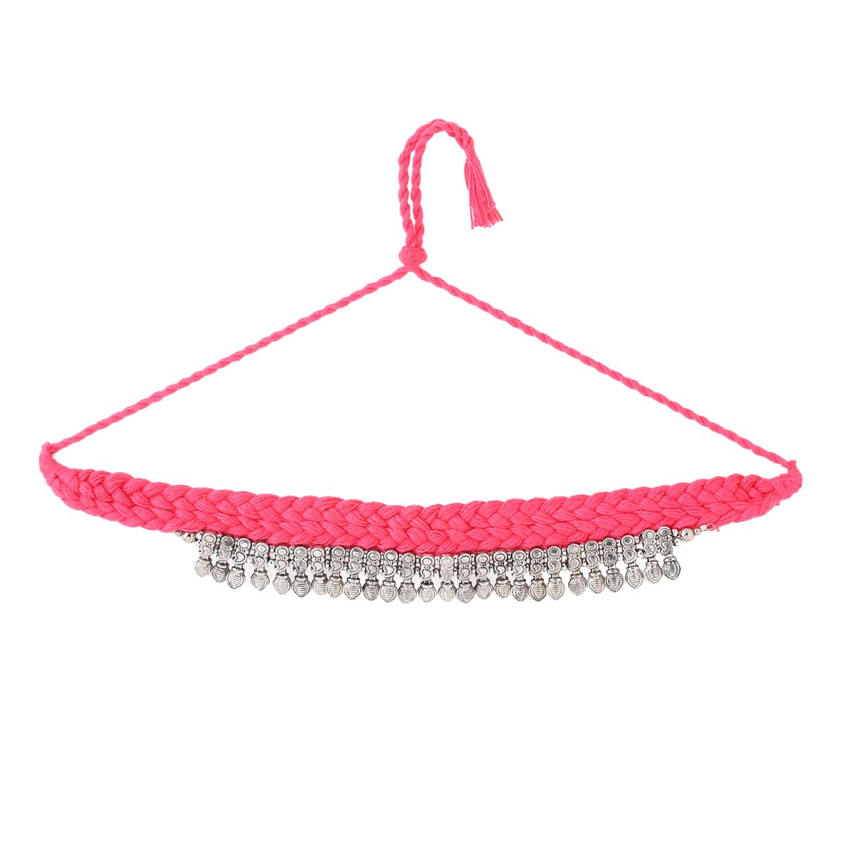 Elevate your style with the Yellow Chimes Threaded Silver Oxidised Jewellery Set, designed exclusively for women and girls. This exquisite Pink Threaded Choker Necklace Set is not just a piece of jewelry; it’s a statement of elegance and sophistication for any occasion.