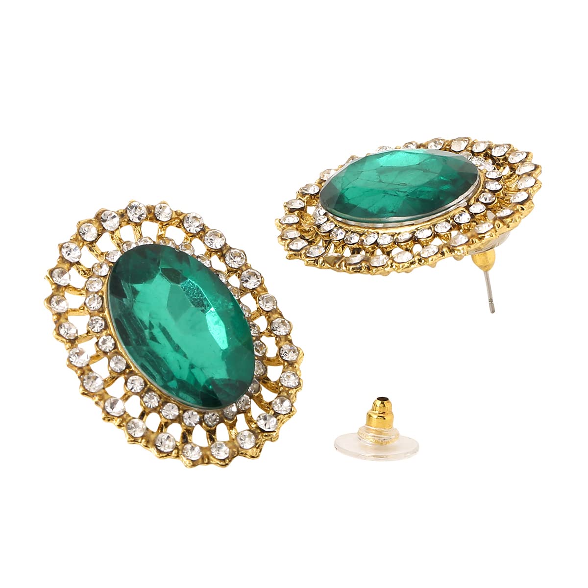 Yellow Chimes Jewellery Set for Women and Girls White Beads Necklace Set for Women | Gold Tone Green Crystal Choker Necklace Set | Birthday Gift for girls & women Anniversary Gift for Wife
