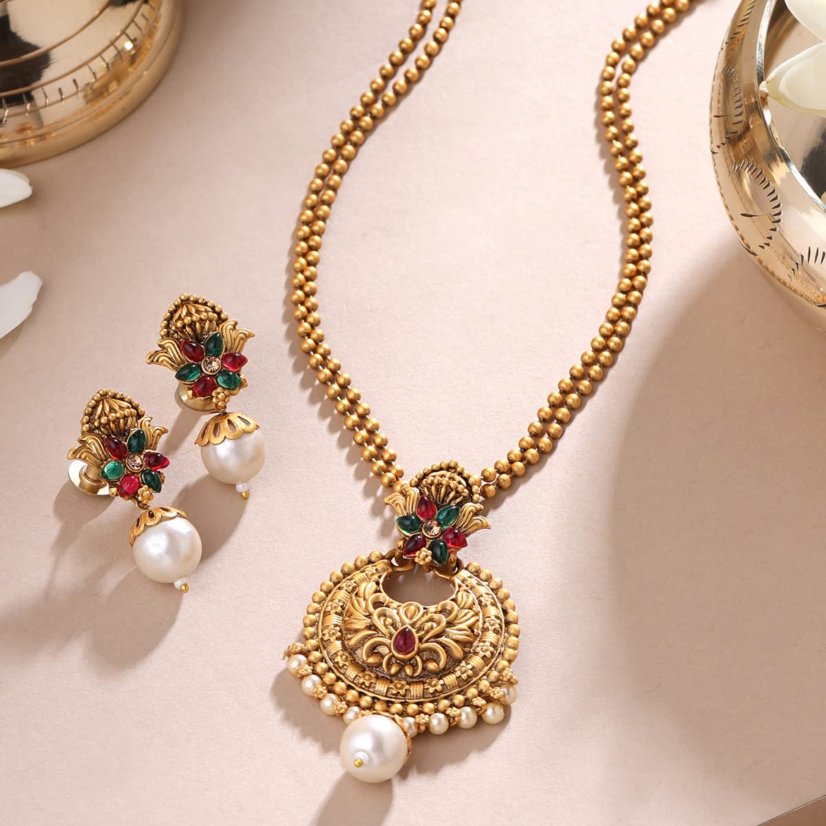 - Stunning Design: Featuring gold plated charm drop beads and elegant beaded pearl drops, this necklace set is a true reflection of style and grace.