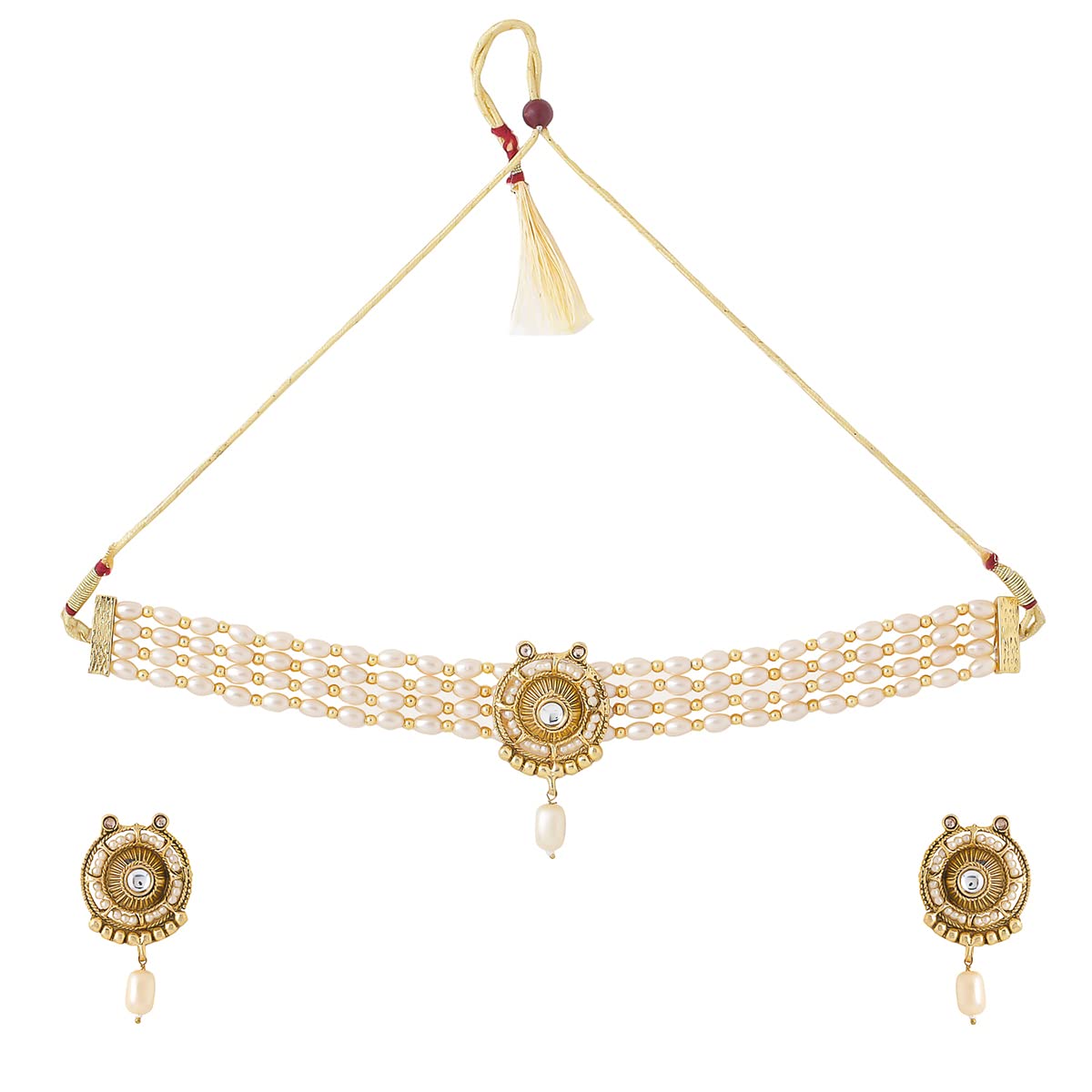 Yellow Chimes Jewellery Set for Women and Girls Beads Necklace Set for Women | Gold Plated Charm Drop Beads Beaded Pearl Drop Necklace Set | Birthday Gift for girls and women Anniversary Gift for Wife