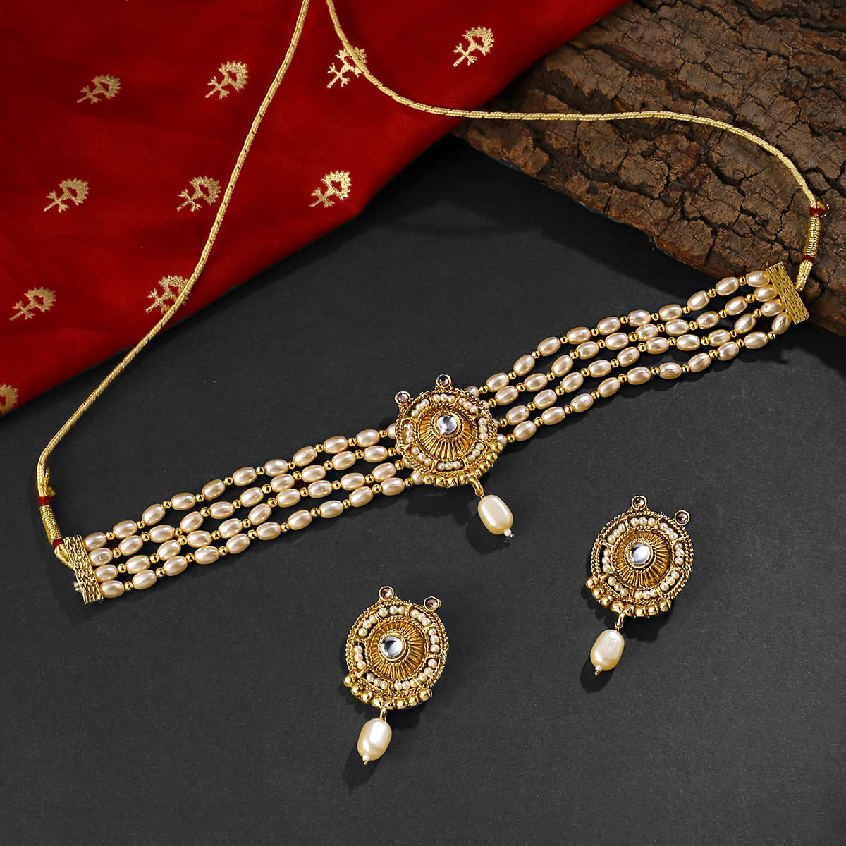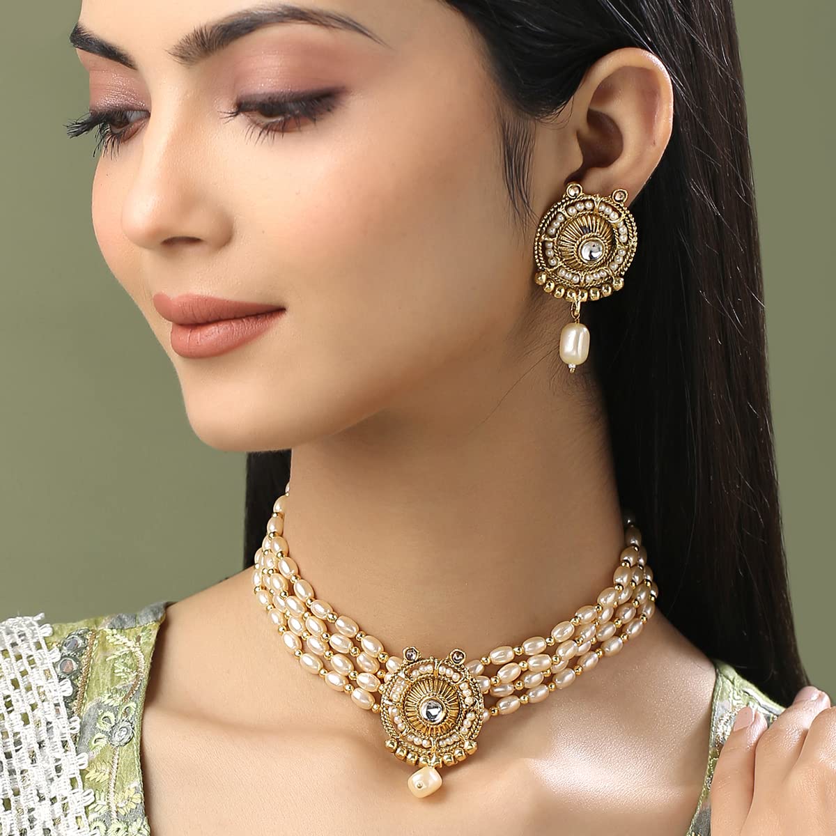 - This moti beads beaded necklace set is a perfect wedding jewellery that adds charm to your day. Our Product is perfect for valentines Anniversary Birthday gift for Women,girlfriend,Wife.