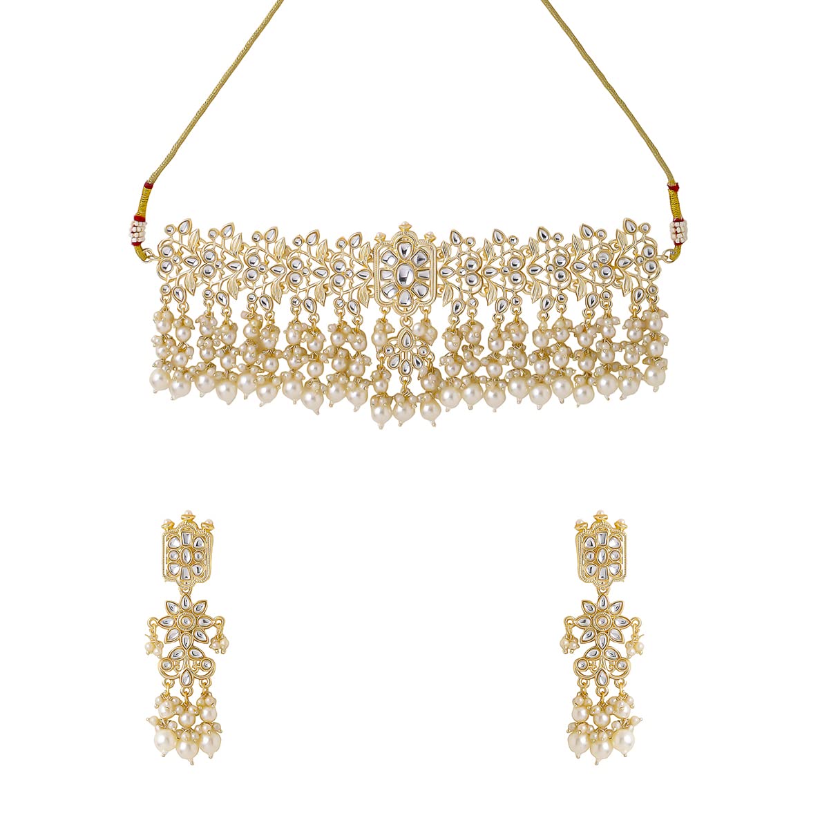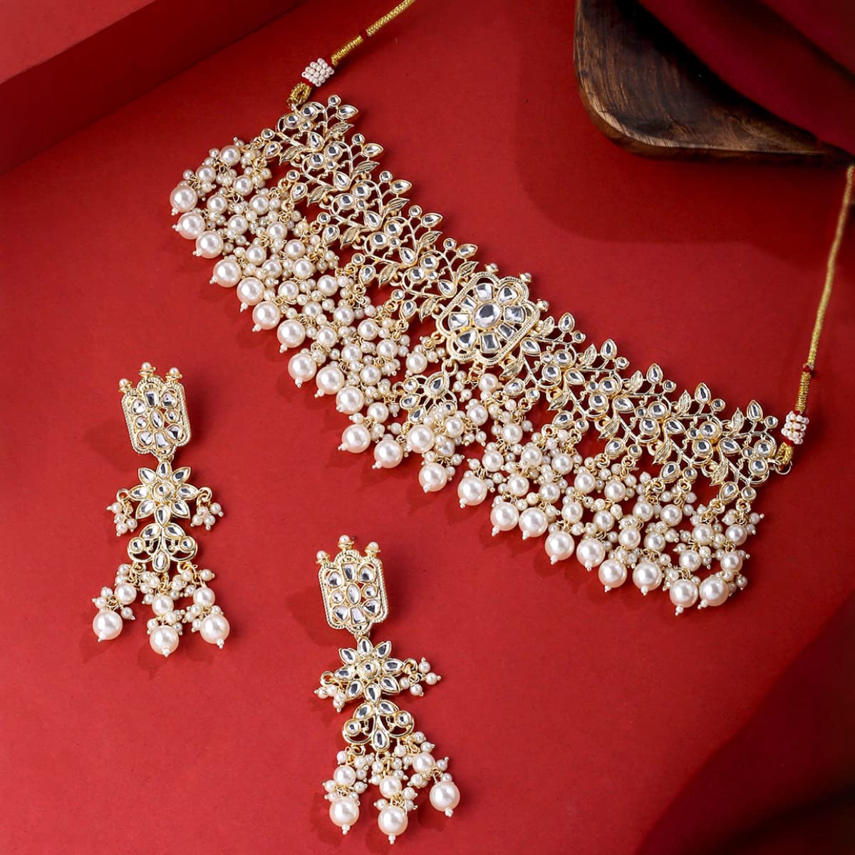 Yellow Chimes Jewellery Set for Women and Girls Traditional Kundan Necklaces Set | Gold Plated White Beads Drop Kundan Set | Birthday Gift for girls and women Anniversary Gift for Wife