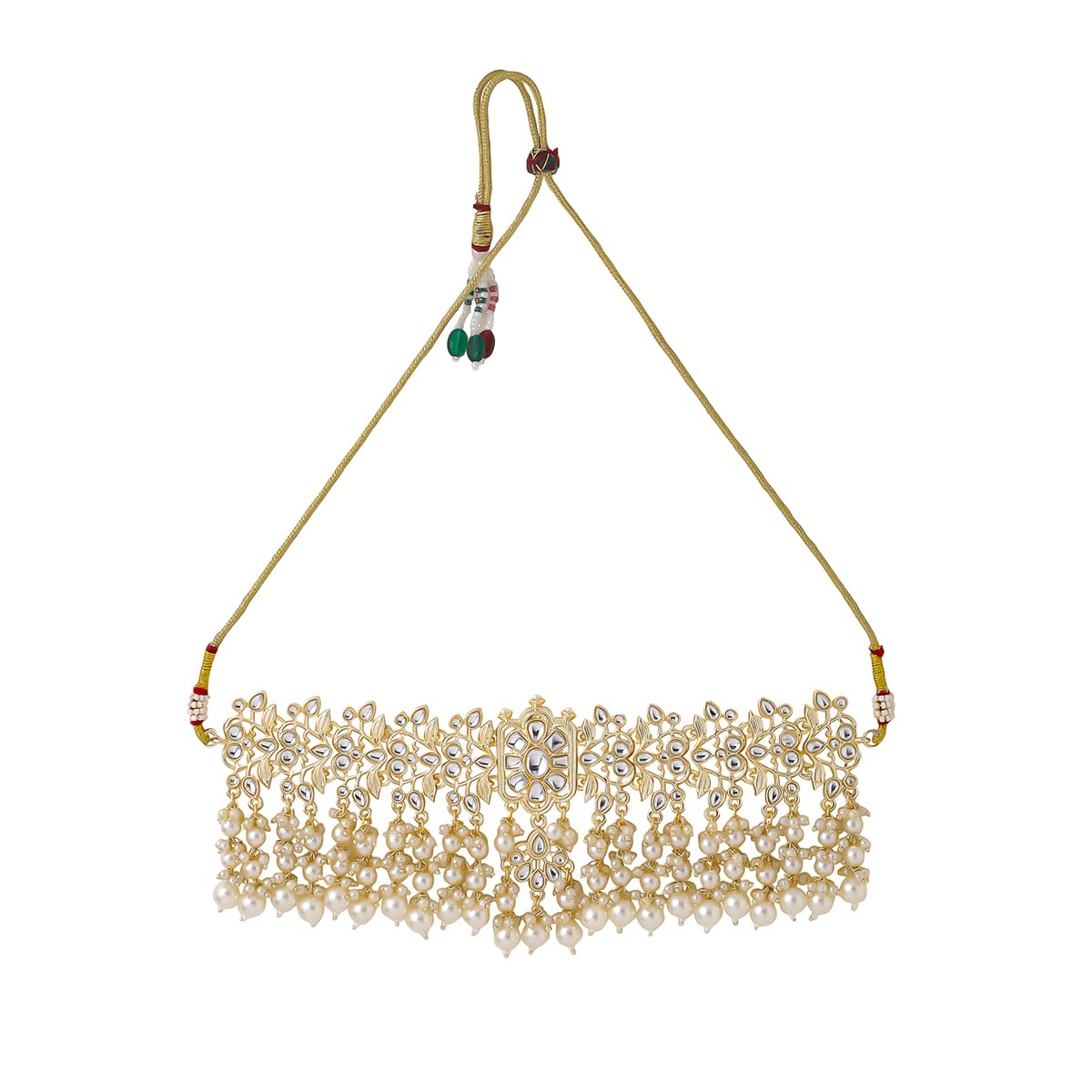 - Exquisite Design: Adorned with glimmering Kundan stones and complemented by gold-plated white beads, this jewellery set radiates luxury.