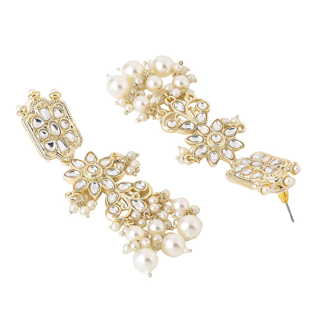 Jewellery Set for Women and Girls Traditional Kundan Necklaces Set | Gold Plated White Beads Drop Kundan Set | Birthday Gift for girls and women Anniversary Gift for Wife