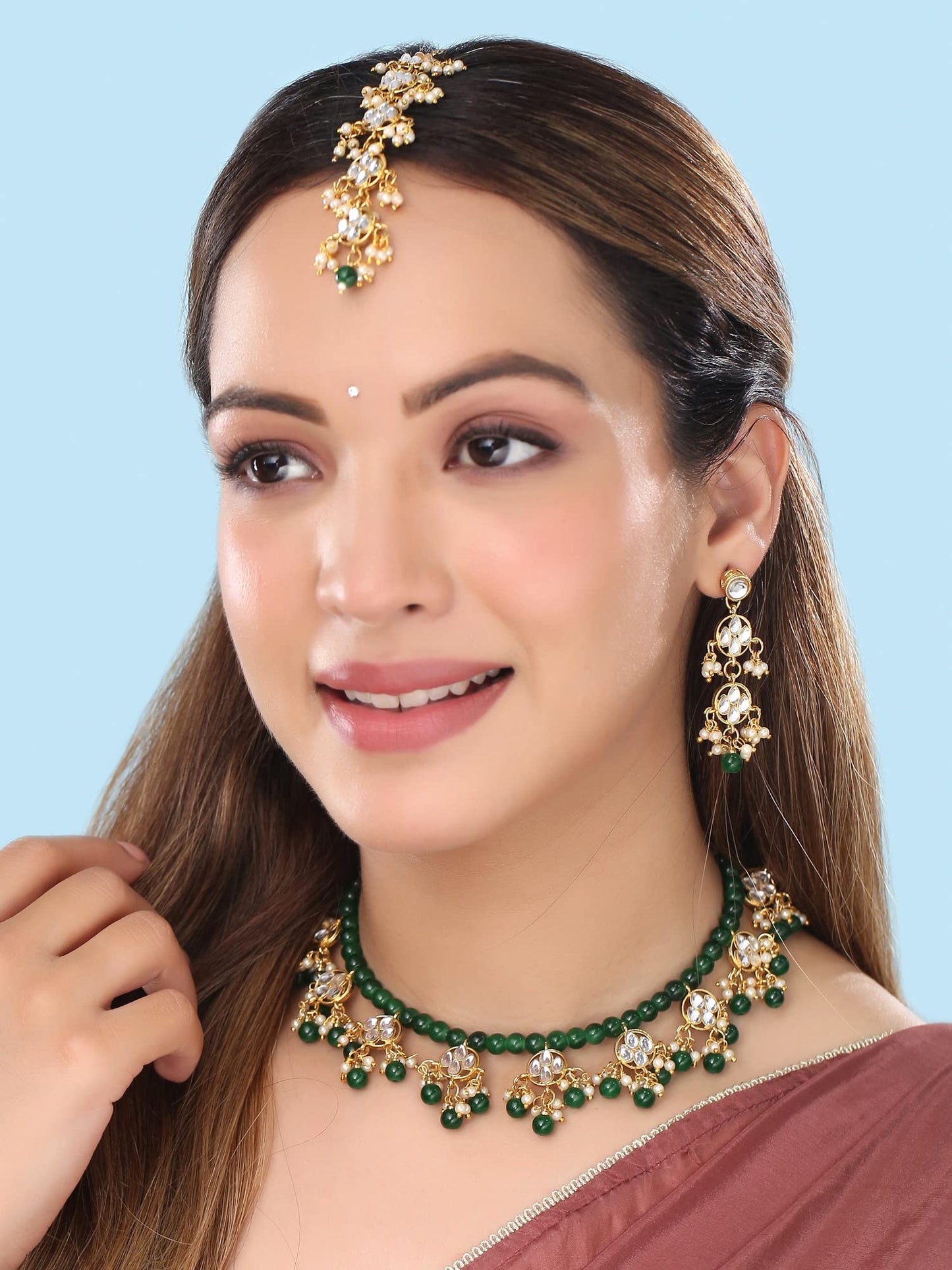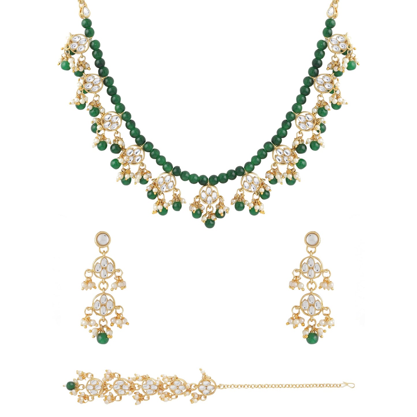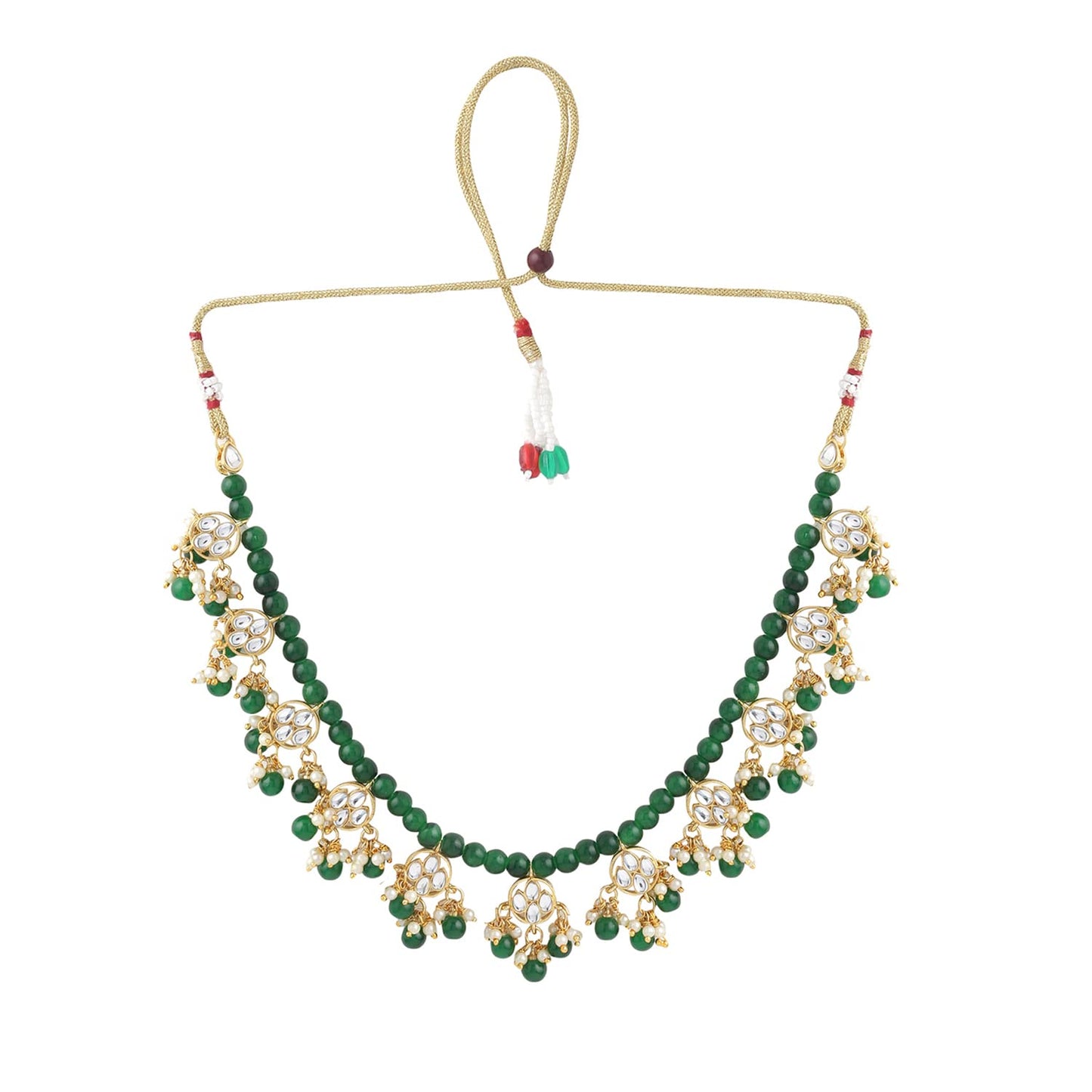 Yellow Chimes Jewellery Set for Women and Girls Kundan Necklace Set | Gold Plated Green Maroon Beads Drop Kundan Necklace Set | Birthday Gift for girls and women Anniversary Gift for Wife