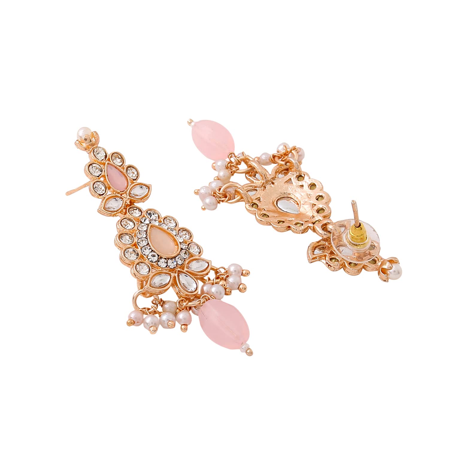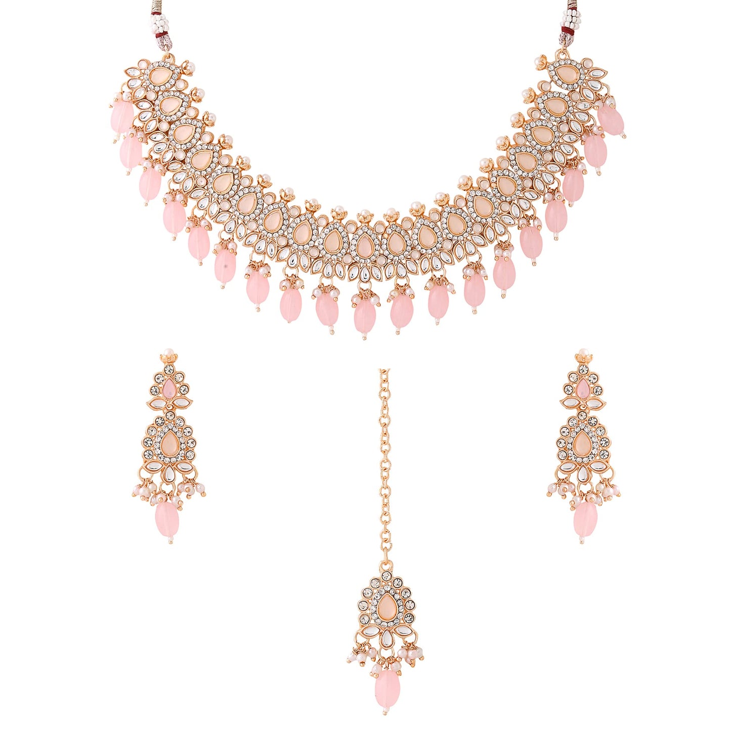 Jewellery Set for Women and Girls Kundan Necklace Set Gold Plated Kundan Studded Pink Beads Drop Choker Necklace Set | Birthday Gift for girls and women Anniversary Gift for Wife
