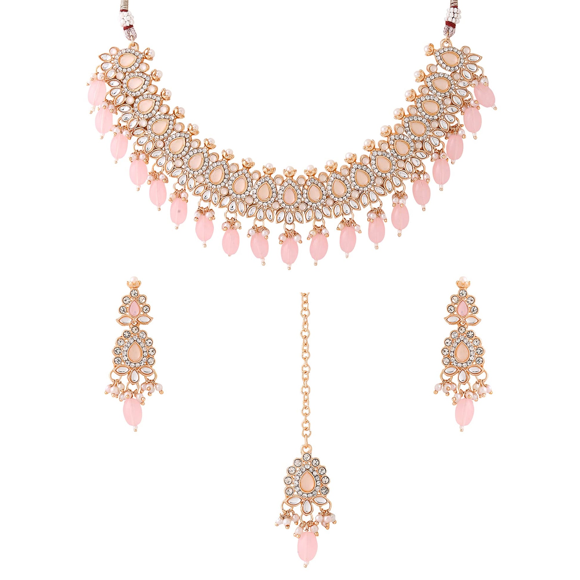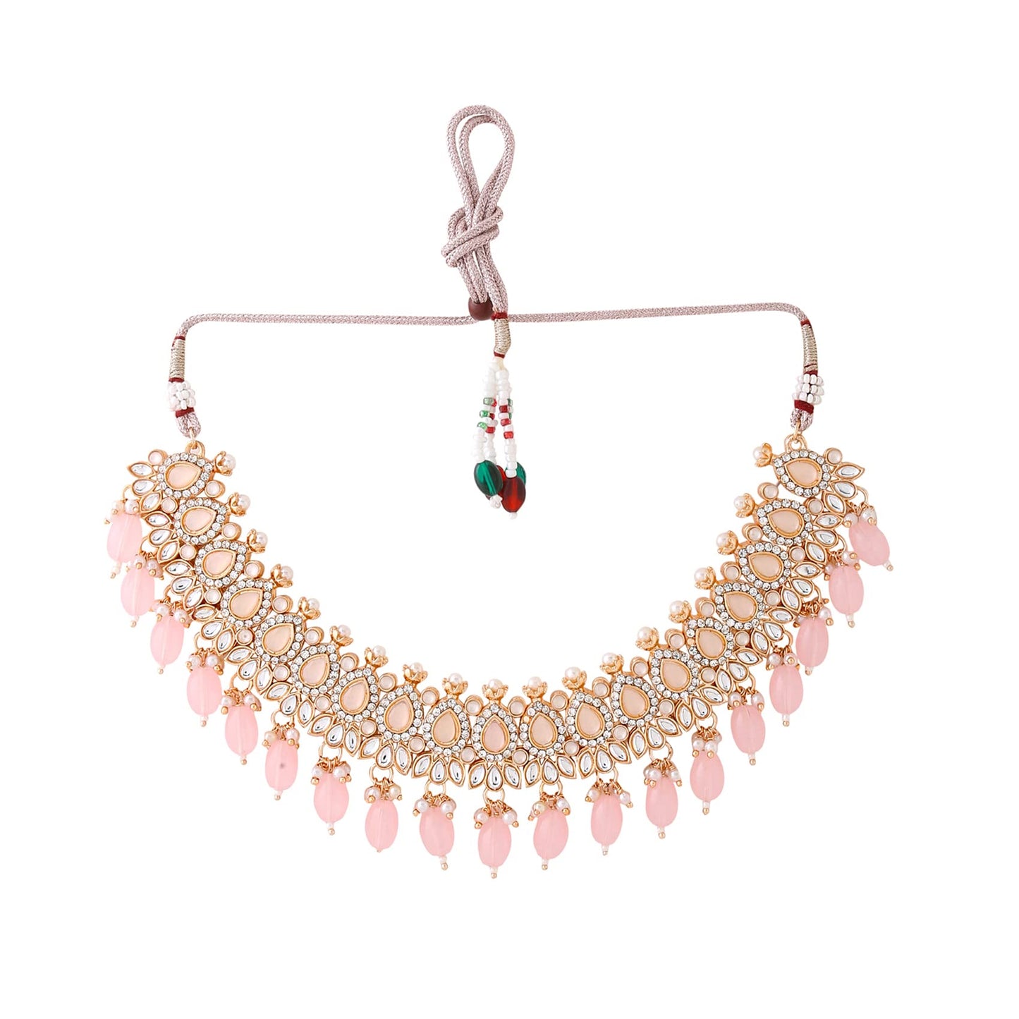 Yellow Chimes Jewellery Set for Women and Girls Kundan Necklace Set Gold Plated Kundan Studded Pink Beads Drop Choker Necklace Set | Birthday Gift for girls and women Anniversary Gift for Wife