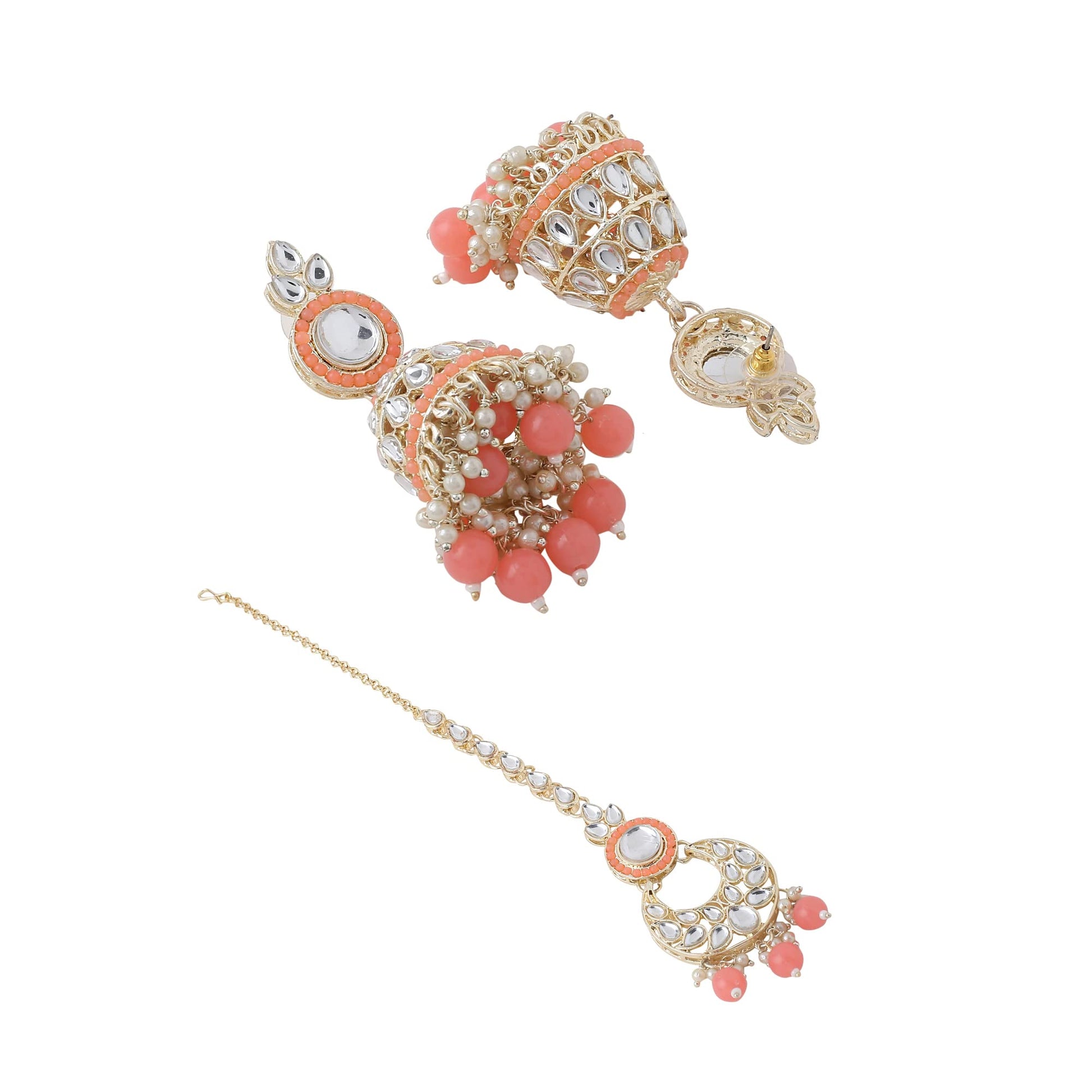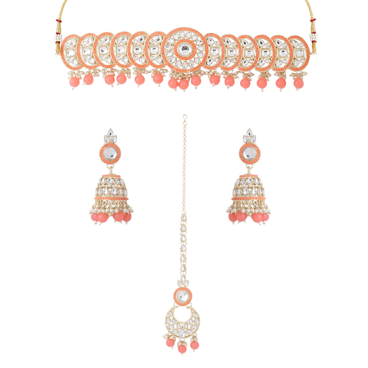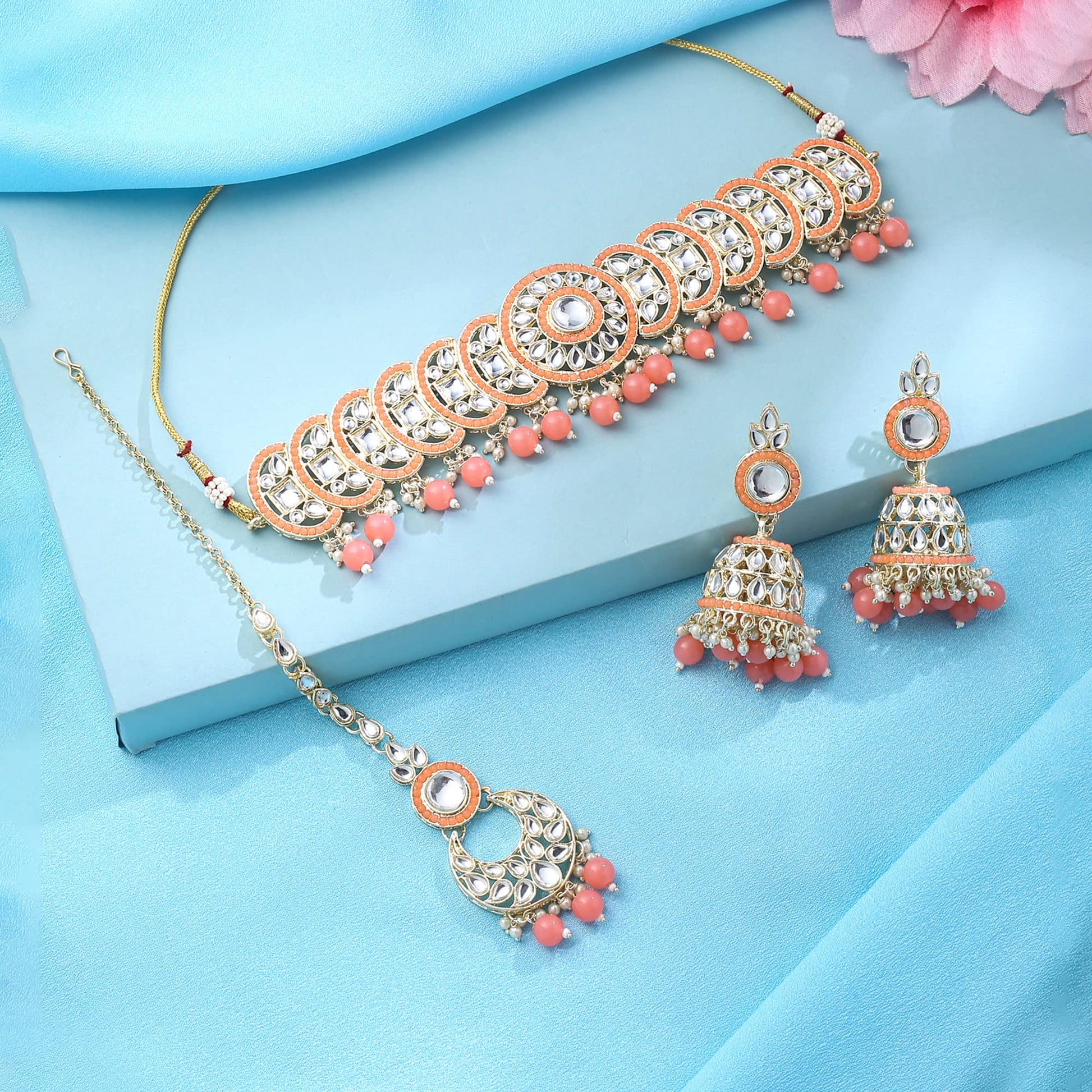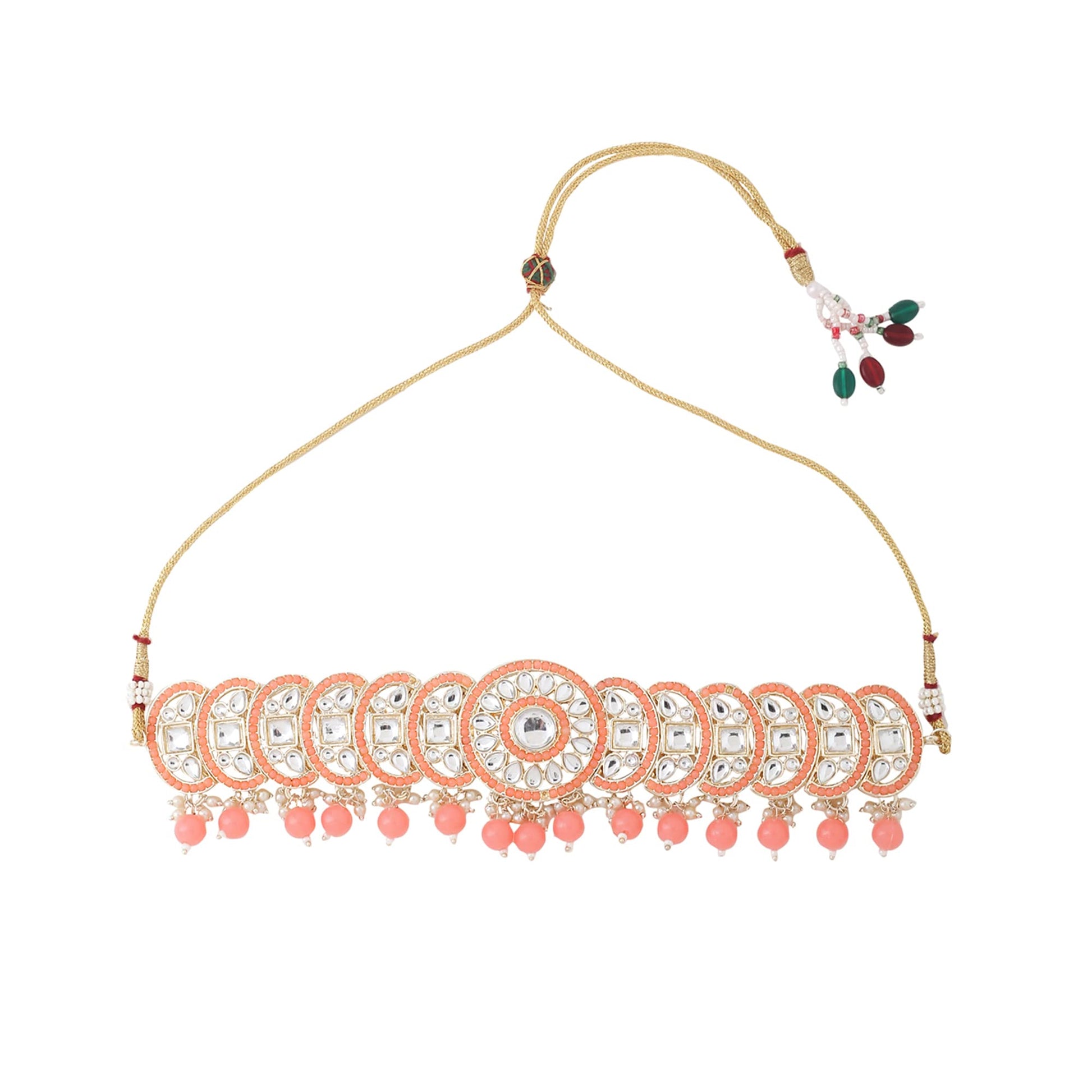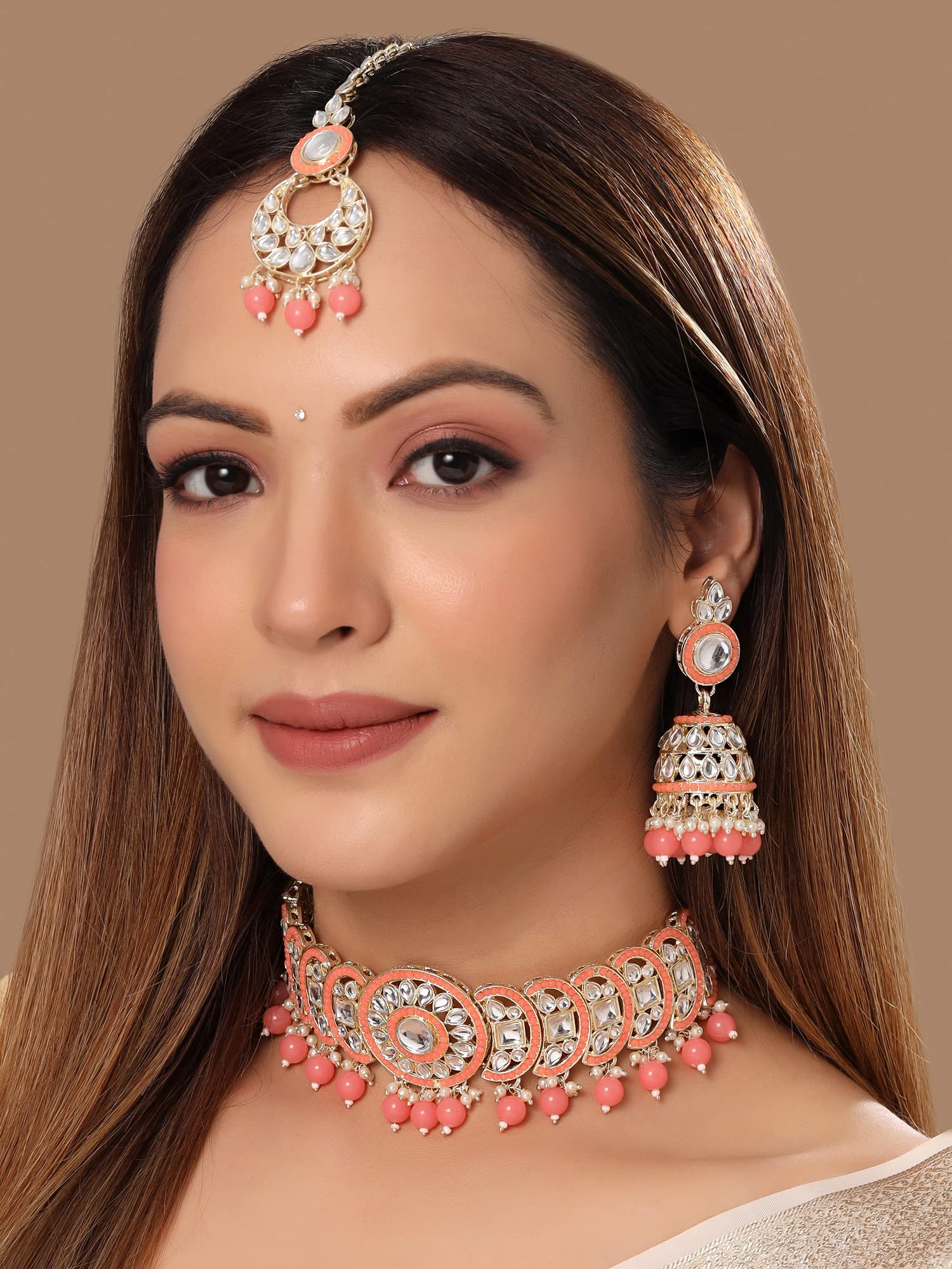 Jewellery Set for Women and Girls Kundan Necklace Set Gold Plated Kundan Studded Pink Pearl Drop Choker Necklace Set | Birthday Gift for girls and women Anniversary Gift for Wife