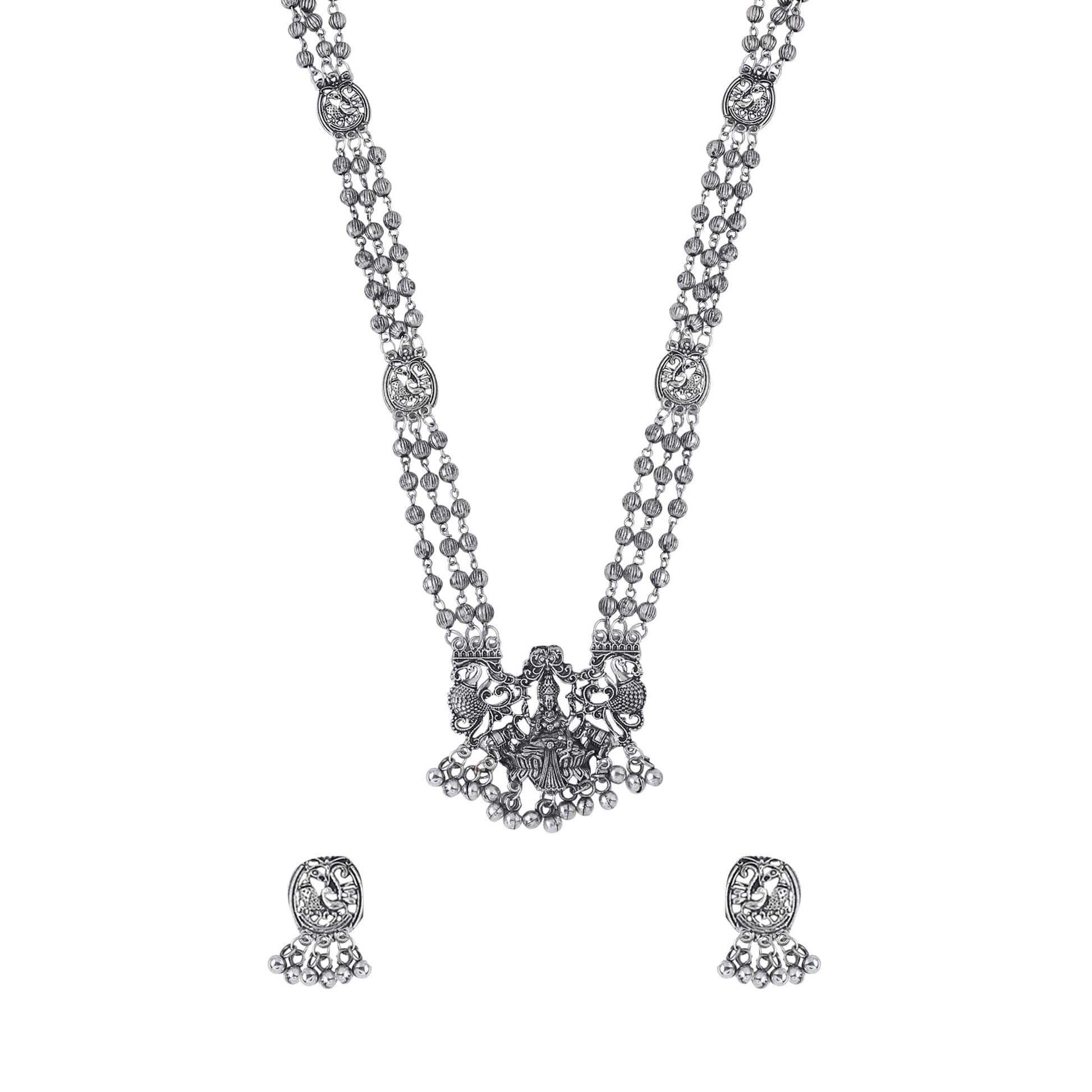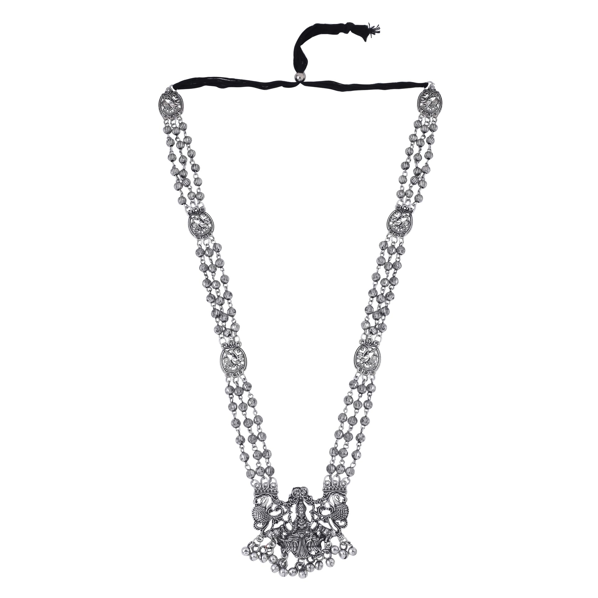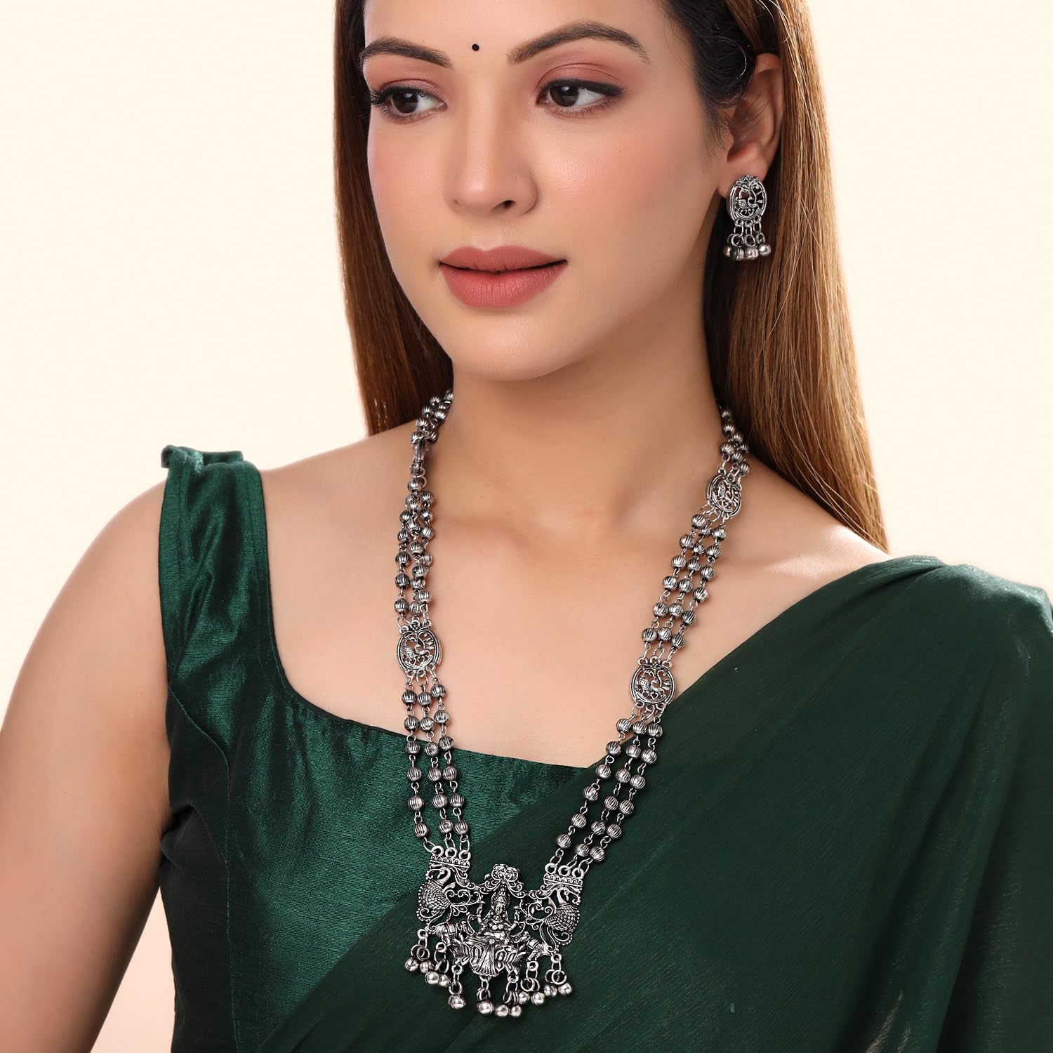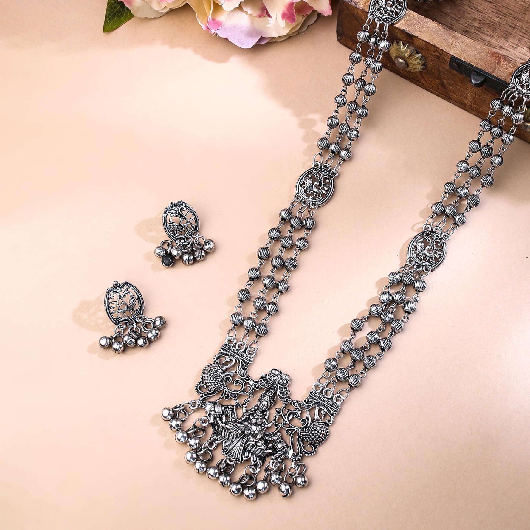 Yellow Chimes Jewellery Set for Women and Girls Temple Jewellery Set for Women | Silver Oxidised Temple Choker Necklace Set | Birthday Gift for girls and women Anniversary Gift for Wife