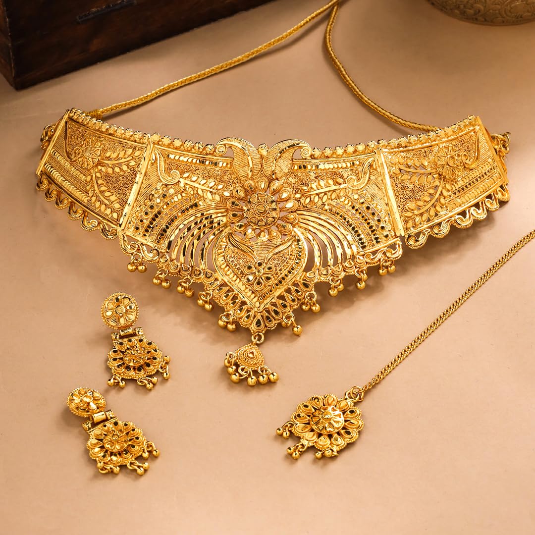 Discover the enchanting Yellow Chimes Jewellery Set designed specifically for women and girls. This stunning gold necklace set features intricate gold-toned beads that beautifully capture the essence of elegance and tradition. Perfect for a range of occasions, it serves as an exquisite birthday gift or a thoughtful anniversary gift for your beloved wife.