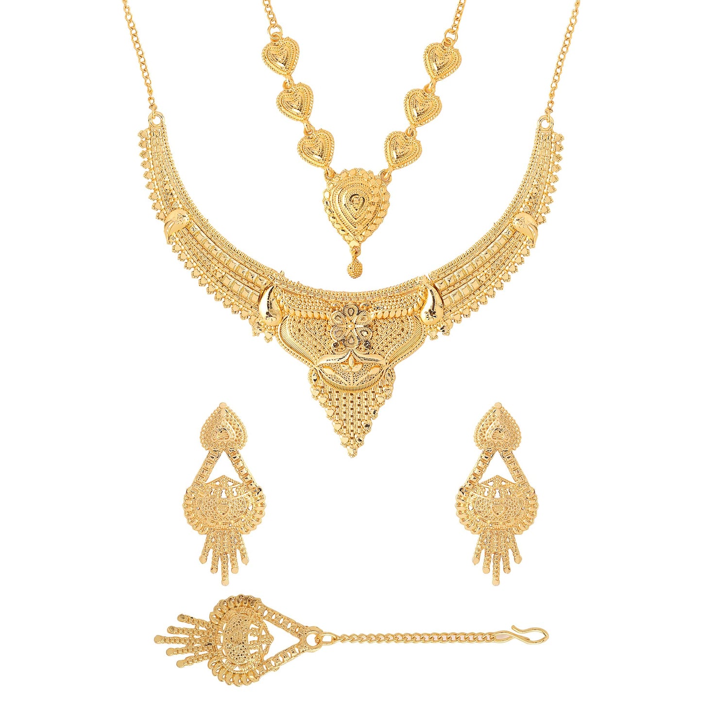 Jewellery Set for Women and Girls One Gram Gold Jewellery Set for Women | Gold Plated Bridal Choker Necklace Set | Birthday Gift for Girls & Women Anniversary Gift for Wife