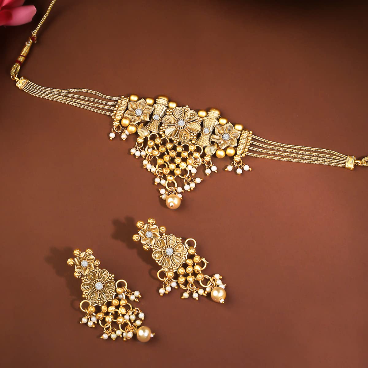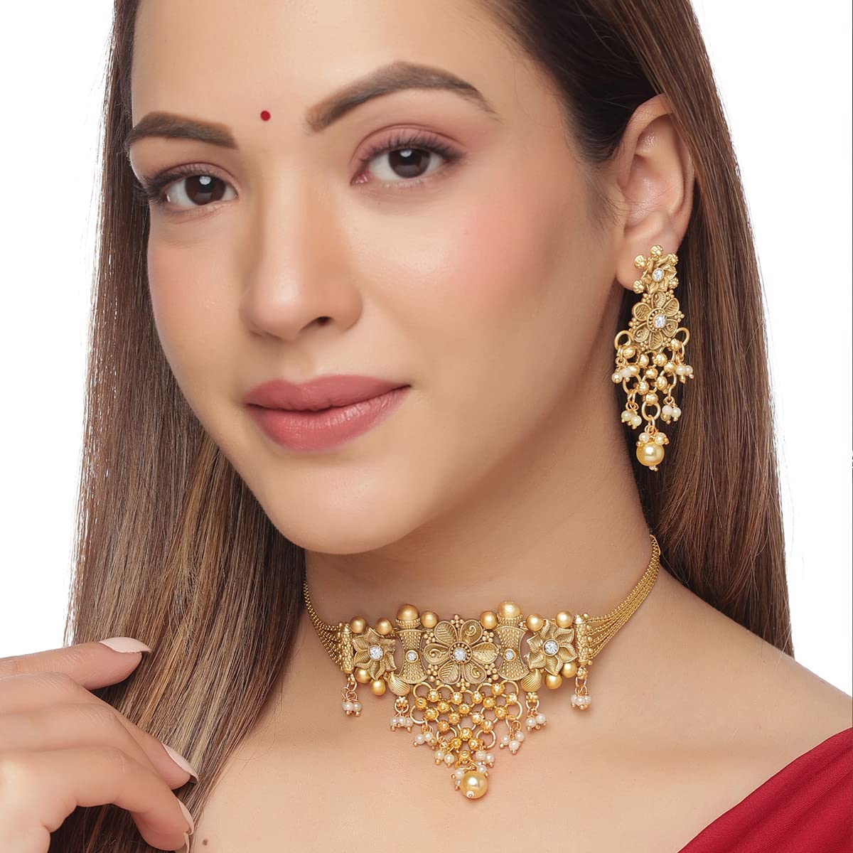 Jewellery Set for Women and Girls Bridal Jewellery Set for Wedding | Gold Plated Pearl Drop Designed Gold Choker Necklace Set | Birthday Gift for girls & women Anniversary Gift for Wife