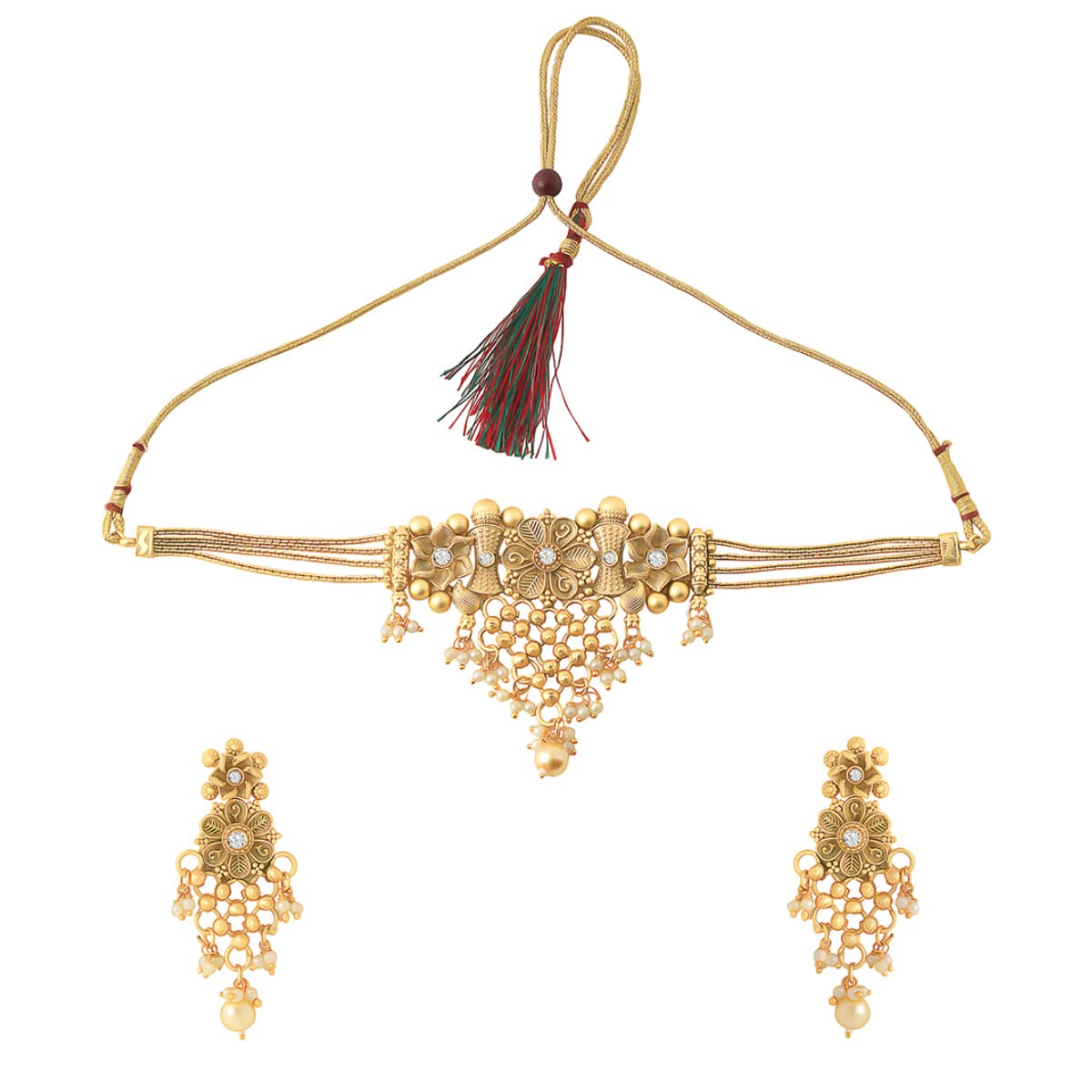 Yellow Chimes Jewellery Set for Women and Girls Bridal Jewellery Set for Wedding | Gold Plated Pearl Drop Designed Gold Choker Necklace Set | Birthday Gift for girls & women Anniversary Gift for Wife
