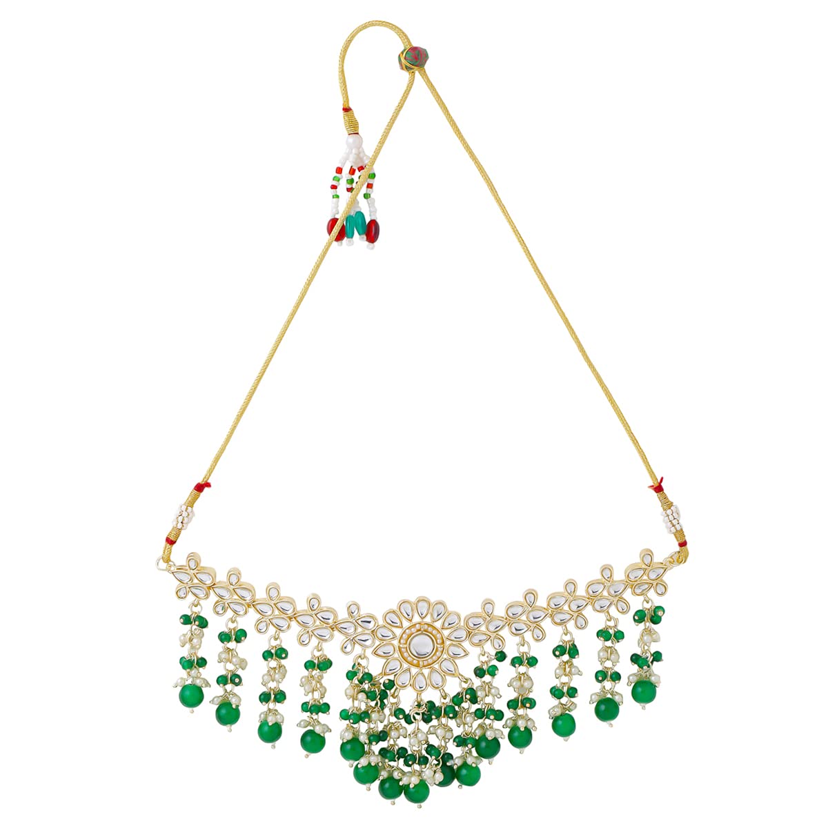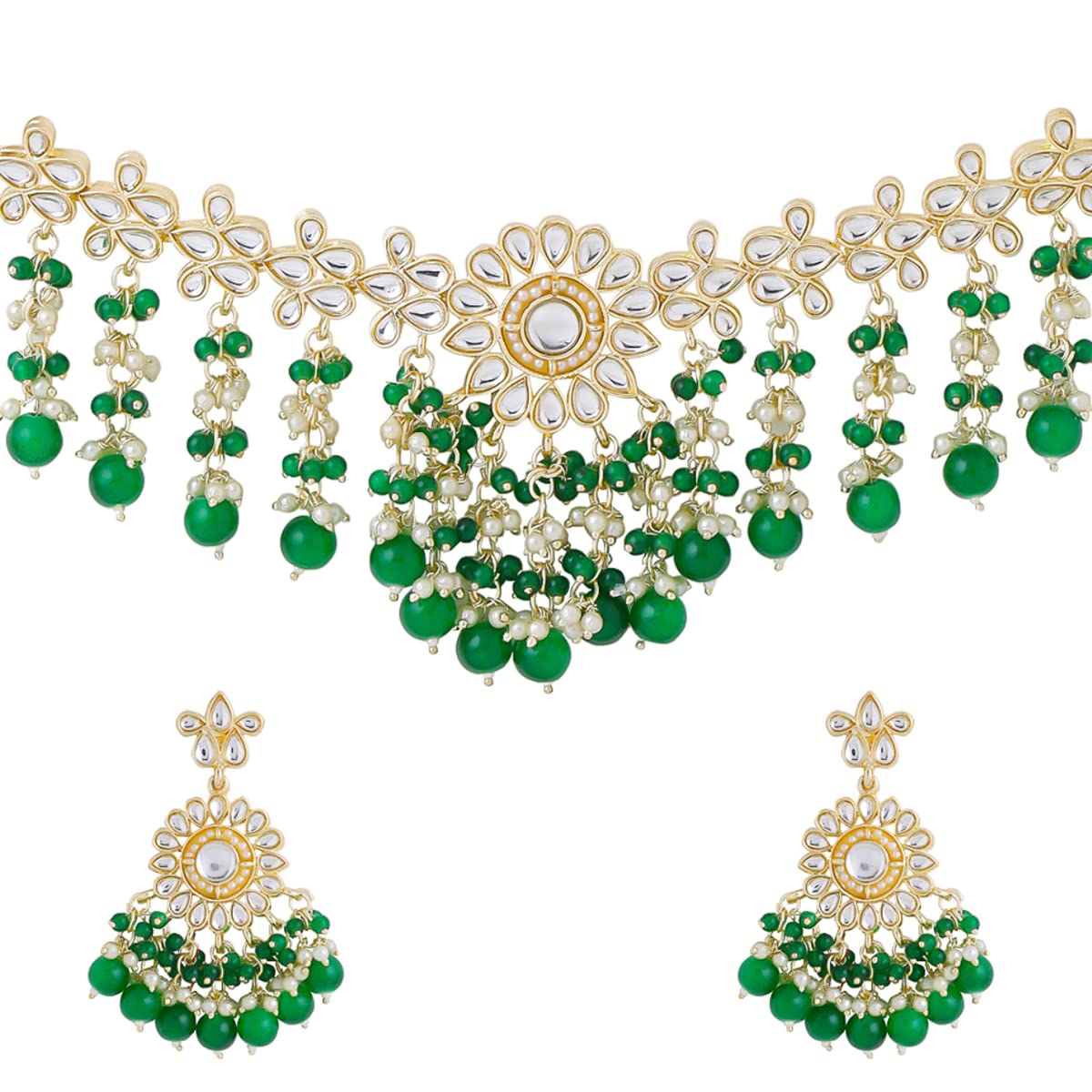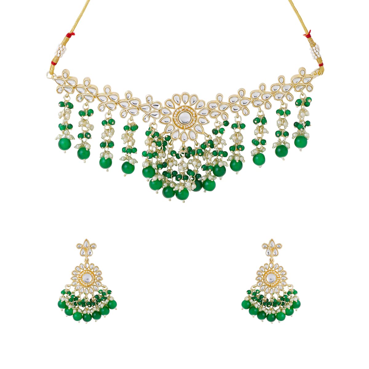 Yellow Chimes Jewellery Set for Women and Girls Traditional Kundan Necklaces Set | Gold Plated Green Beads Drop Kundan Set | Birthday Gift for girls and women Anniversary Gift for Wife