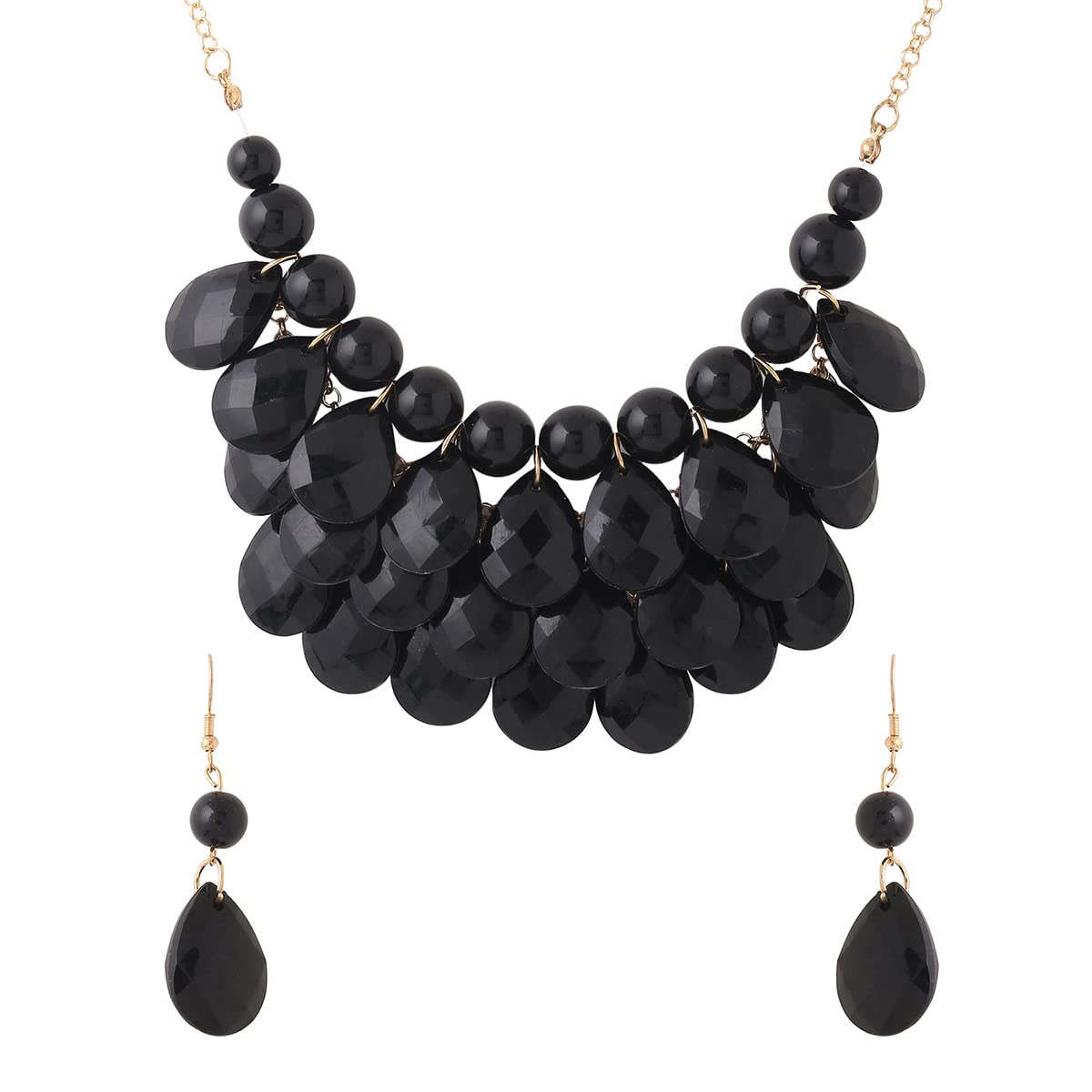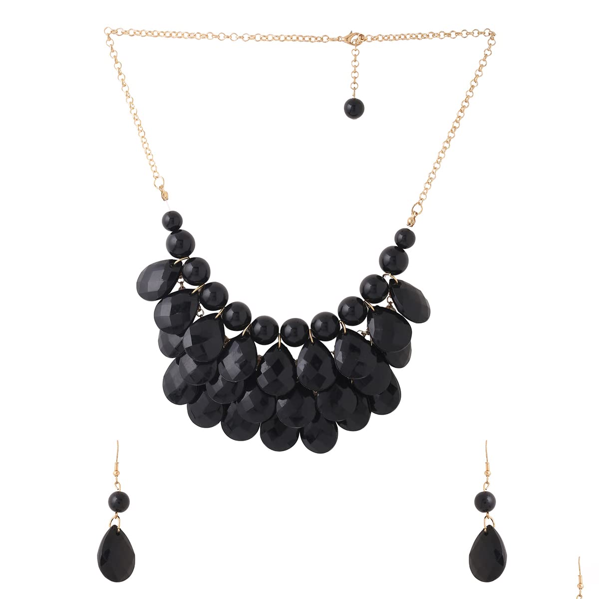 Yellow Chimes Jewellery Set For Women Black Stone Tear Drop Designed Gold Toned Necklace Set For Women and Girls