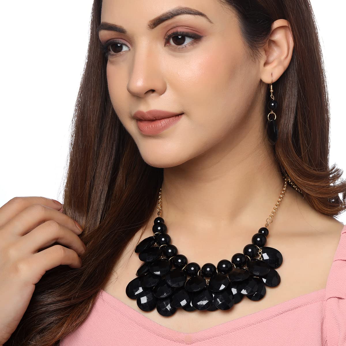 - Versatile Style: The vivid black stones allow you to either match or contrast the necklace with your outfit, enhancing your look for any occasion.