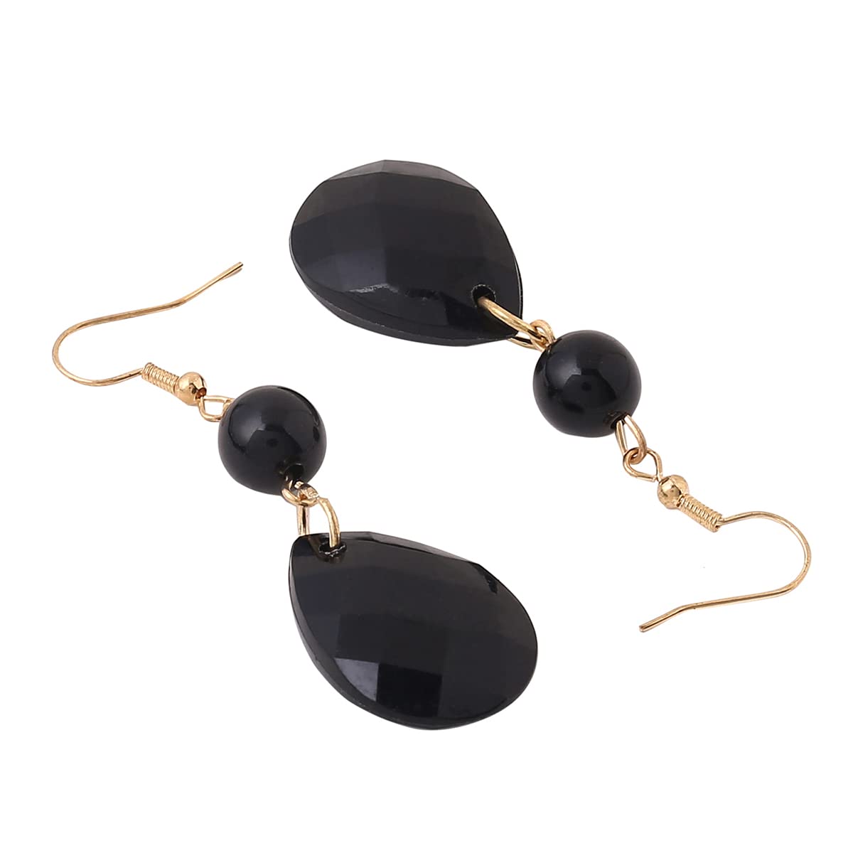 Jewellery Set For Women Black Stone Tear Drop Designed Gold Toned Necklace Set For Women and Girls