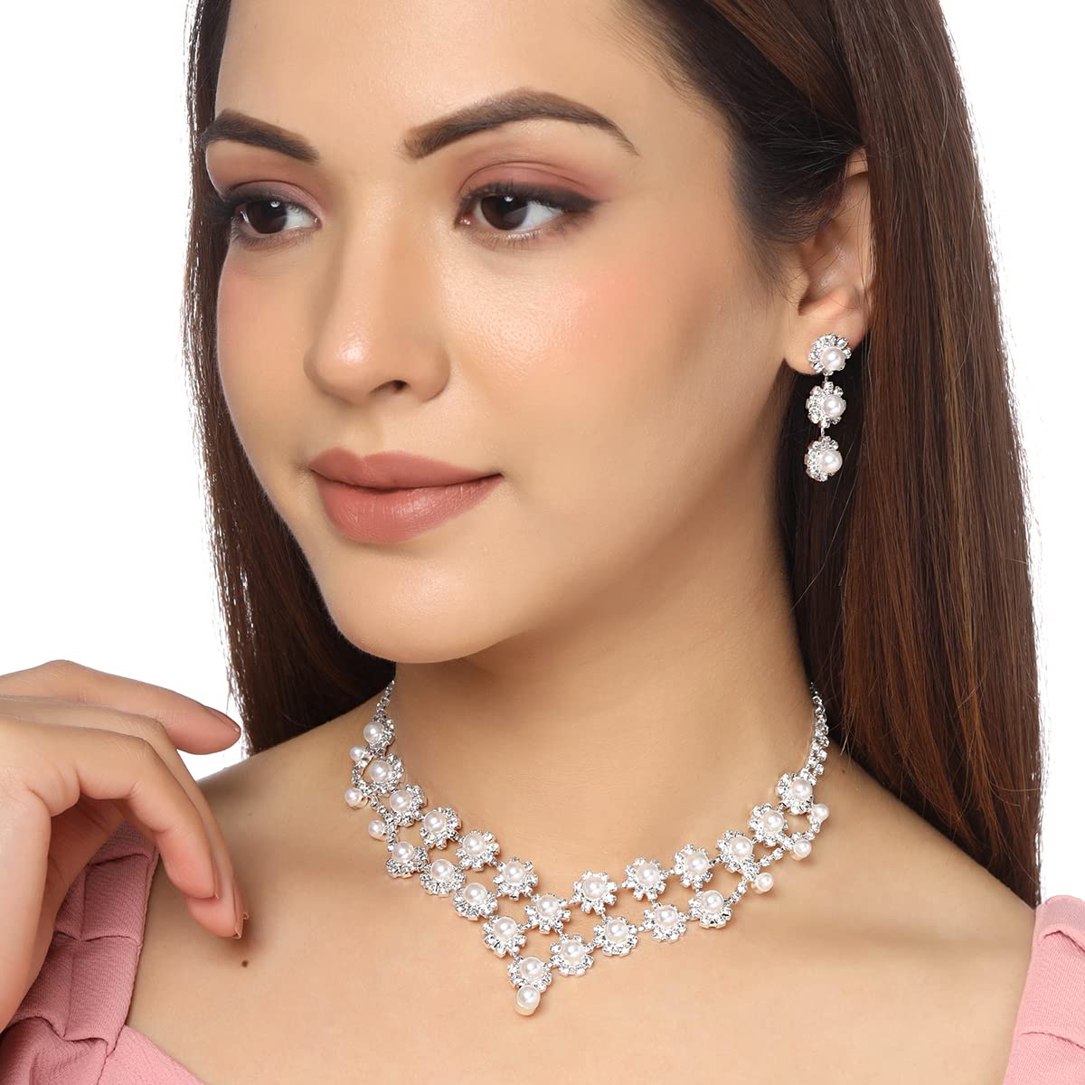 Jewellery Set For Women Floral Pearl Studded Choker Necklace Set With Earring For Women and Girls