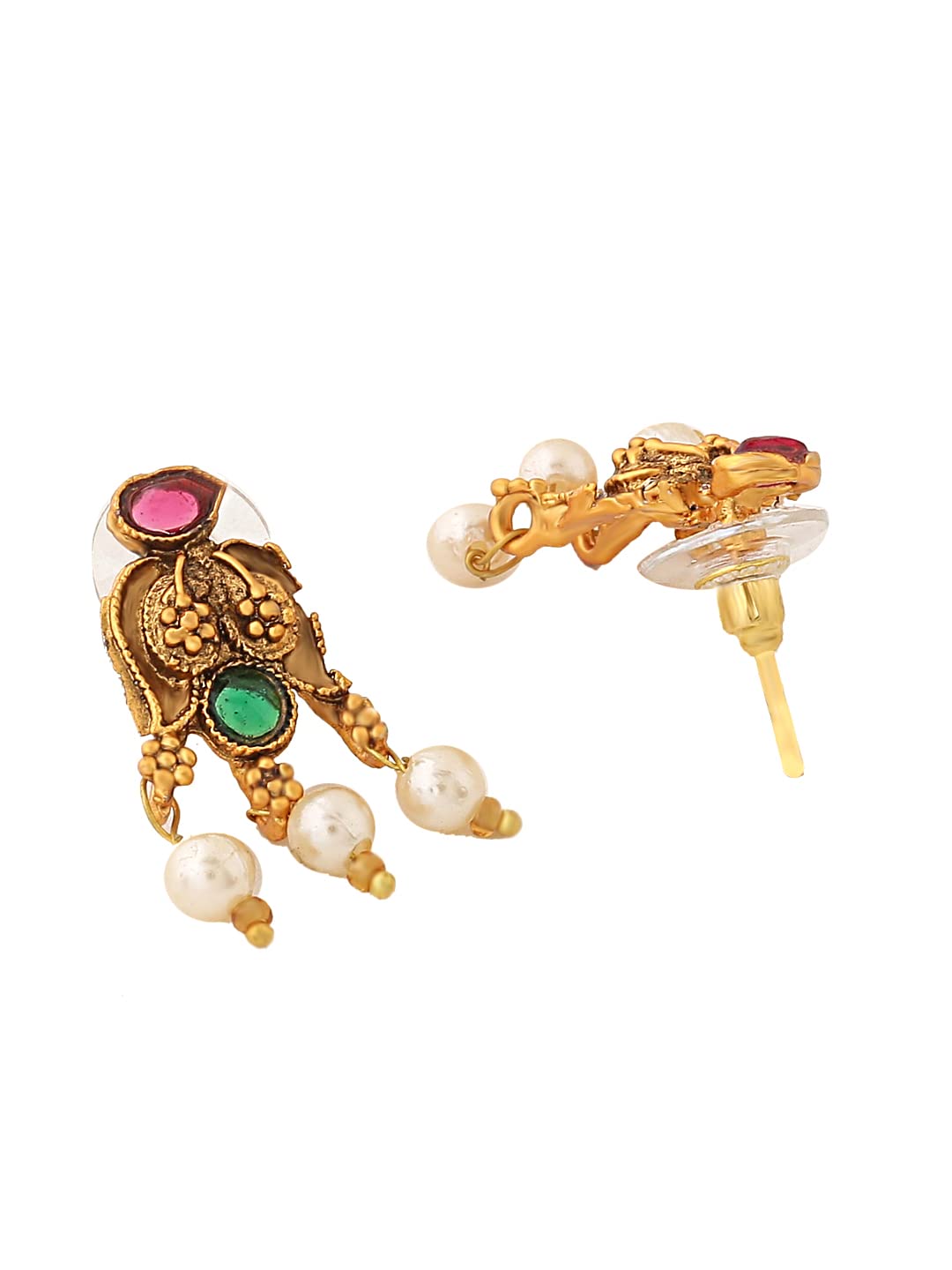 - Yellow Chimes by Globalbees bring this Jewelry from skillfully carved piece in brass with matte gold-tone finish, emanating the aura of magnanimous Temple deities with colourful embellishment, the feminine grace finds no other ethnic match.
