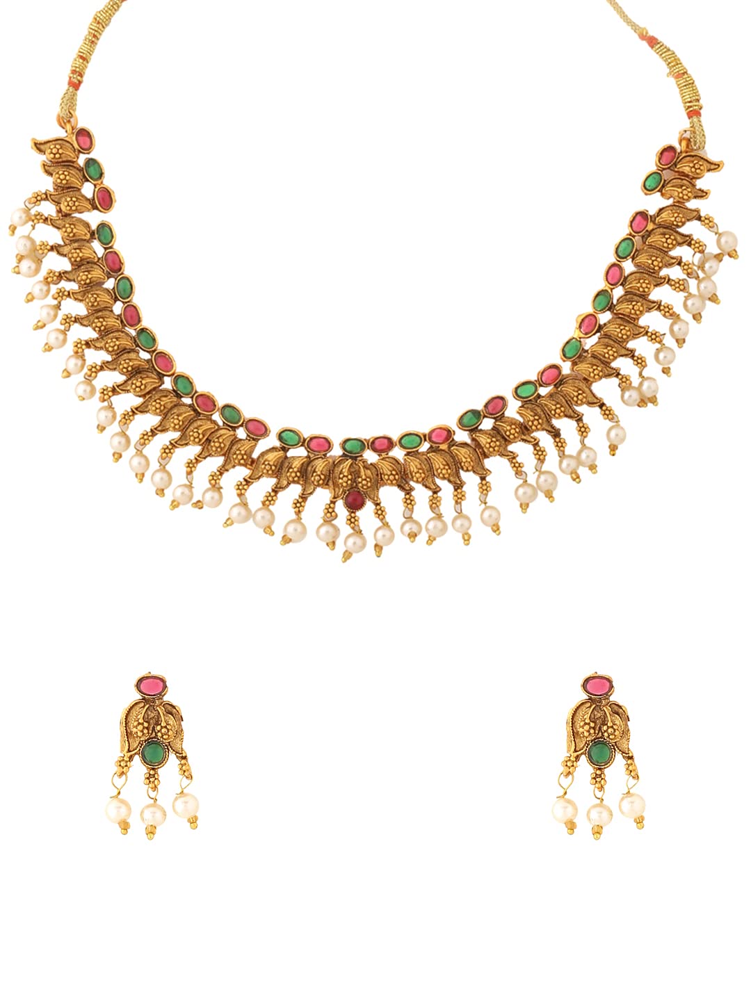 - While draped in six yards of silk, your real enigmatic charm comes alive through this Necklace Set. Let your radiant face come into the spotlight with this handcrafted artisan work purely from the southern part of India.