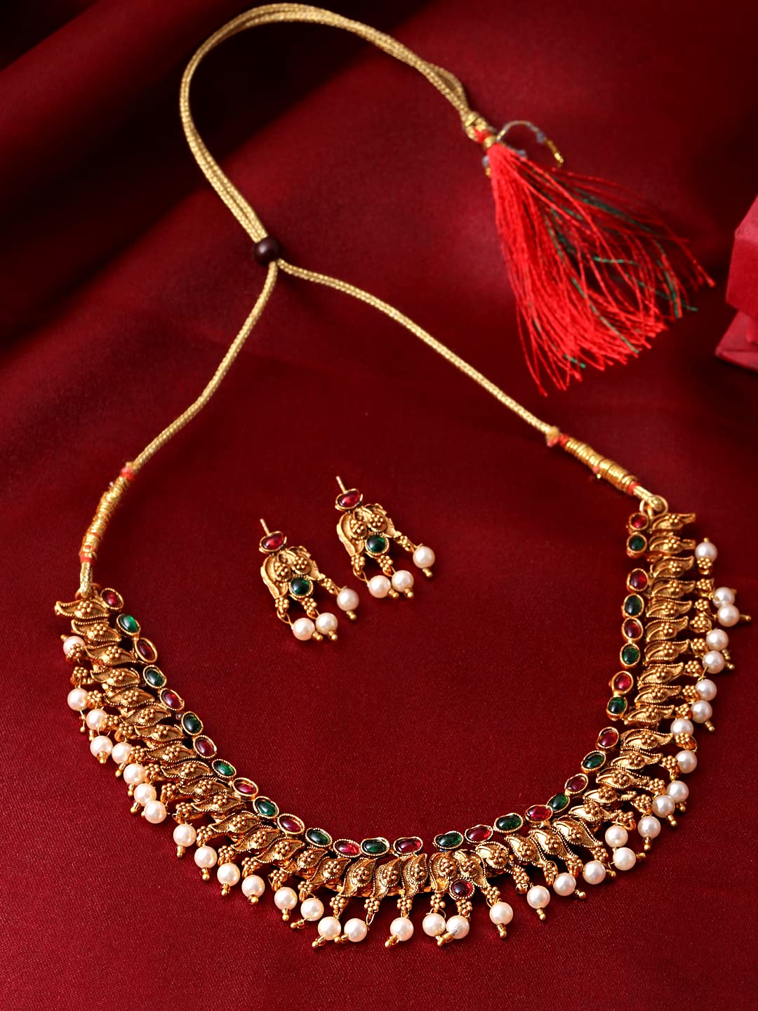Yellow Chimes Jewellery Set for Women Gold Plated Beads Drop Designed Bridal Choker Necklace Set for Women and Girls